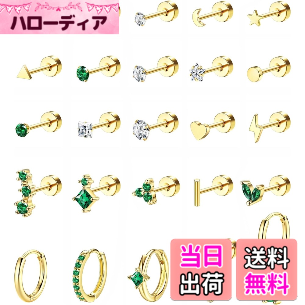 【送料無料】Jstyle 25点 ピアス レディース 人気 セット シルバー ゴールド ブラック エメラルド スタッドピアス フープ 小さめ ステンレス 複数 ジルコニア アレルギー対応 軟骨 女性 ジュエリー 色:ゴールド、サイズ:通用 3,520 ~
