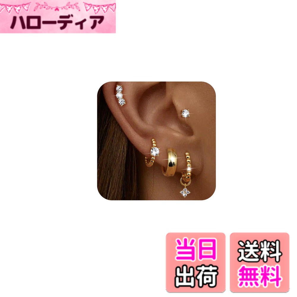 【送料無料】Jstyle 5ペア ピアス レディース 人気 セット シルバー ゴールド スタッドピアス フープ リング 小さめ シルバー925 複数 ジルコニア アレルギー対応 軟骨 女性 ジュエリー 色:ゴールド、サイズ:通用 2,616 ~