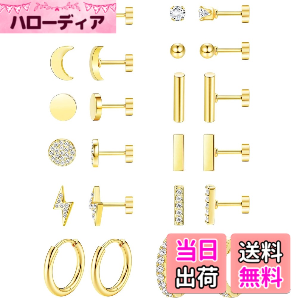 【送料無料】Jstyle 12ペア ピアス レディース 人気 セット シルバー ゴールド ピンクゴールド スタッドピアス フープ 小さめ ステンレス 複数 ジルコニア アレルギー対応 軟骨 女性 ジュエリー 色:ゴールド、サイズ:通用 3,316 ~