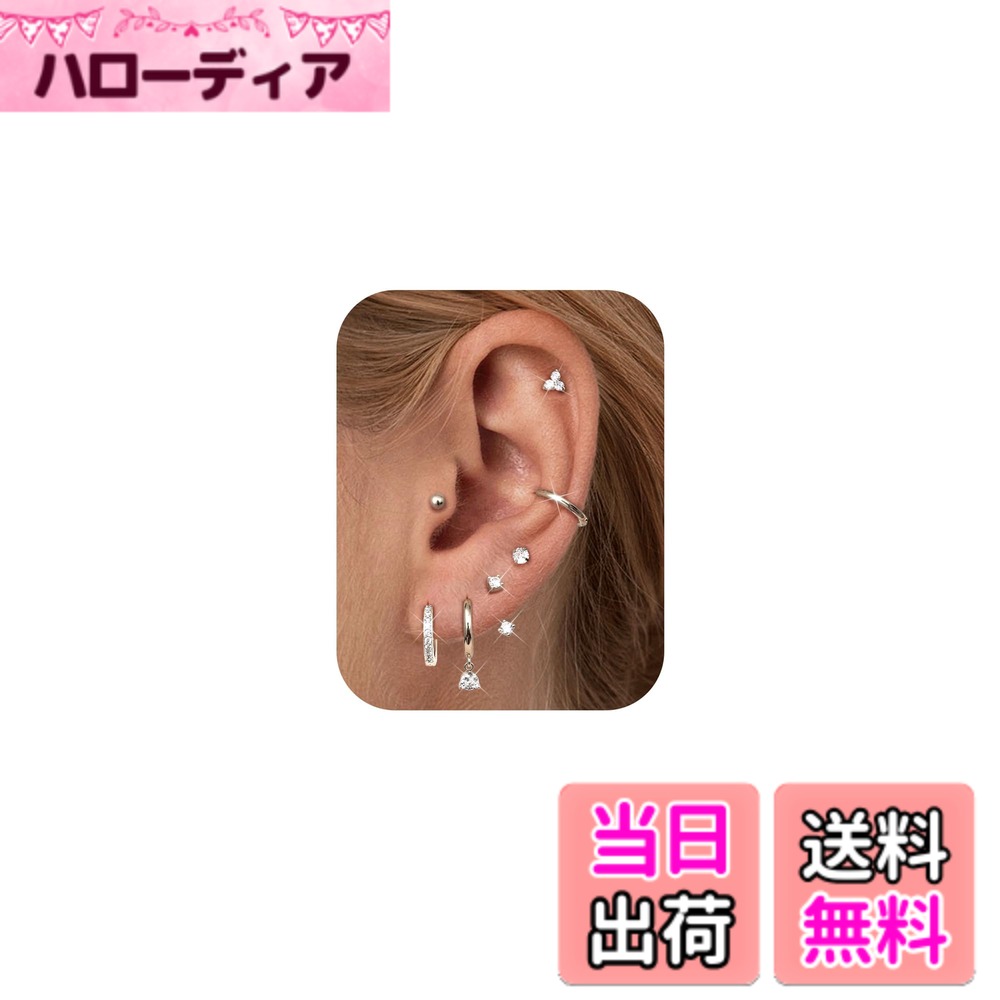 【送料無料】Jstyle 7ペア ピアス レディース ゴールド シルバー スタッドピアス フープ リング 小さめ 複数 ジルコニア アレルギー対応 ステンレス 軟骨 女性 ジュエリー 色:シルバー2、サイズ:通用 2,652 ~