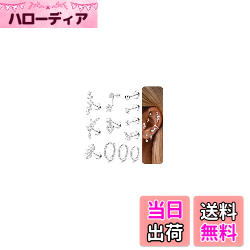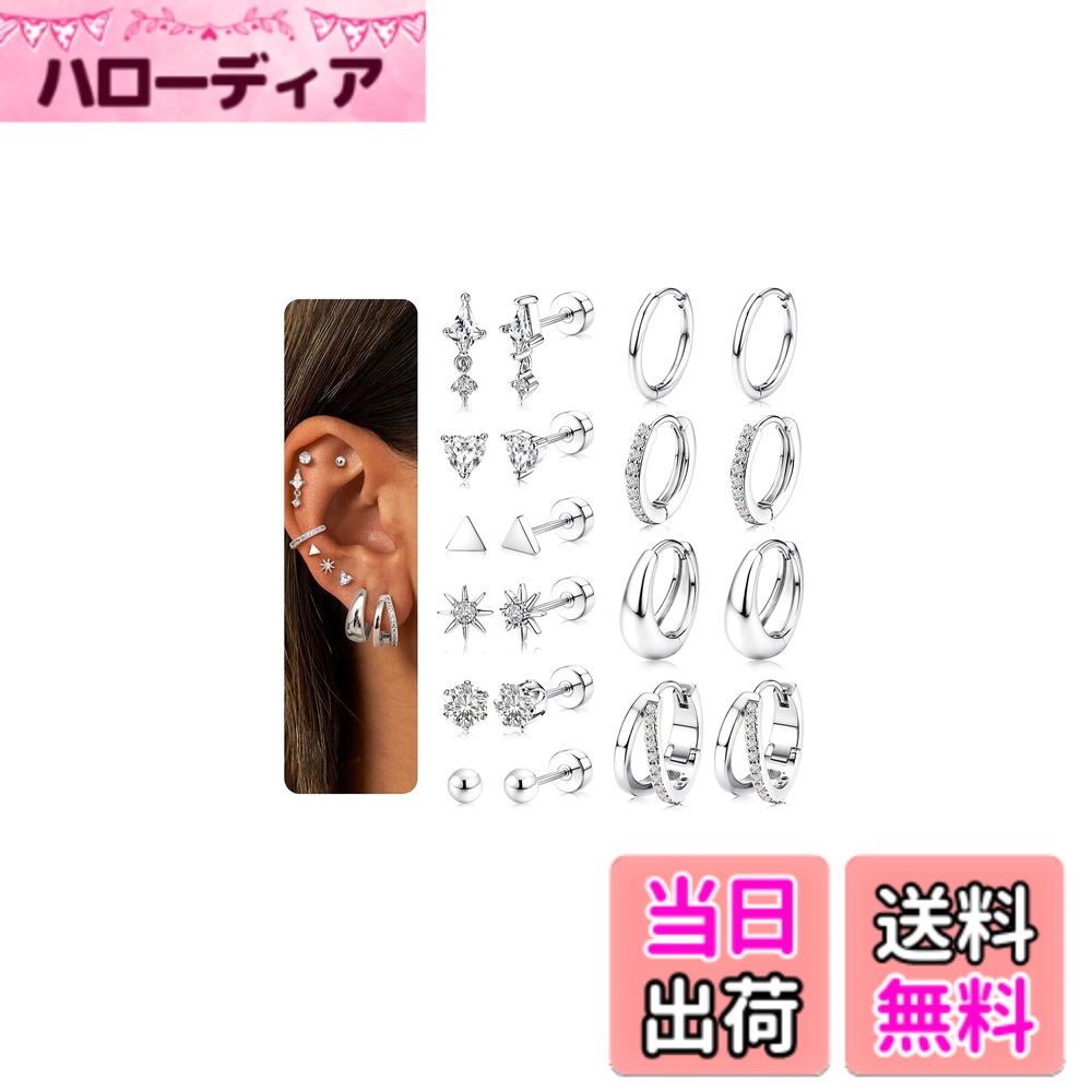【送料無料】Jstyle 12点 ピアス レディース 人気 セット シルバー ゴールド 小さめ 複数 スタッドピアス ステンレス ジルコニア アレルギー対応 軟骨 女性 ジュエリー 色:シルバー、サイズ:通用 2,616 ~