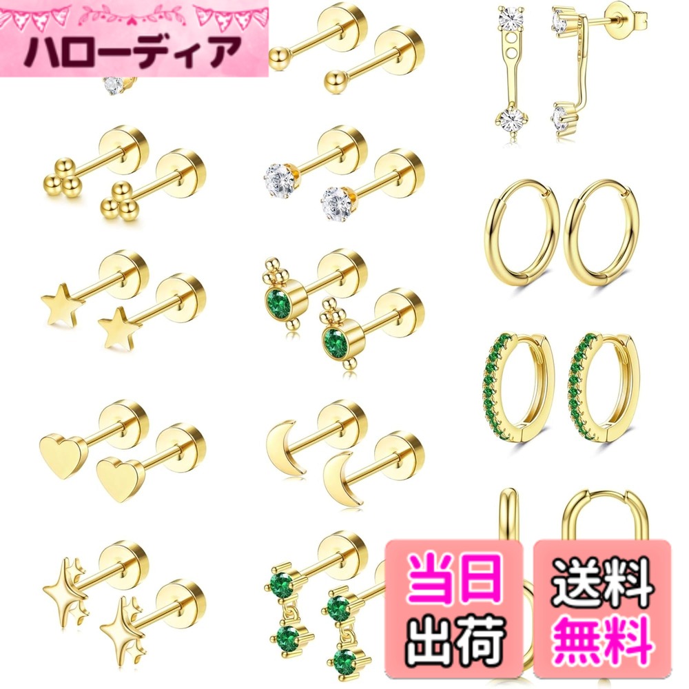 【送料無料】Jstyle 12ペア ピアス セット レディース ゴールド シルバー 組み合わせ スタッドピアス フープ リング 複数 小さめ エメラルド ジルコニア アレルギー対応 ステンレス 軟骨 女性 ジュエリー 色:ゴールド、サイズ:通用 2,976 ~