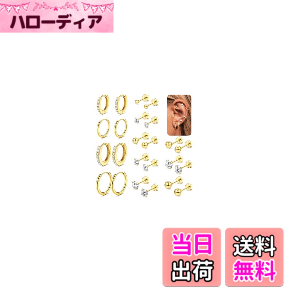 【送料無料】Jstyle 12ペア ピアス レディース ゴールド シルバー スタッドピアス フープ リング 小さめ 複数 ゆれる ジルコニア アレルギー対応 ステンレス 軟骨 女性 ジュエリー 色:ゴールド、サイズ:通用 3,196 ~