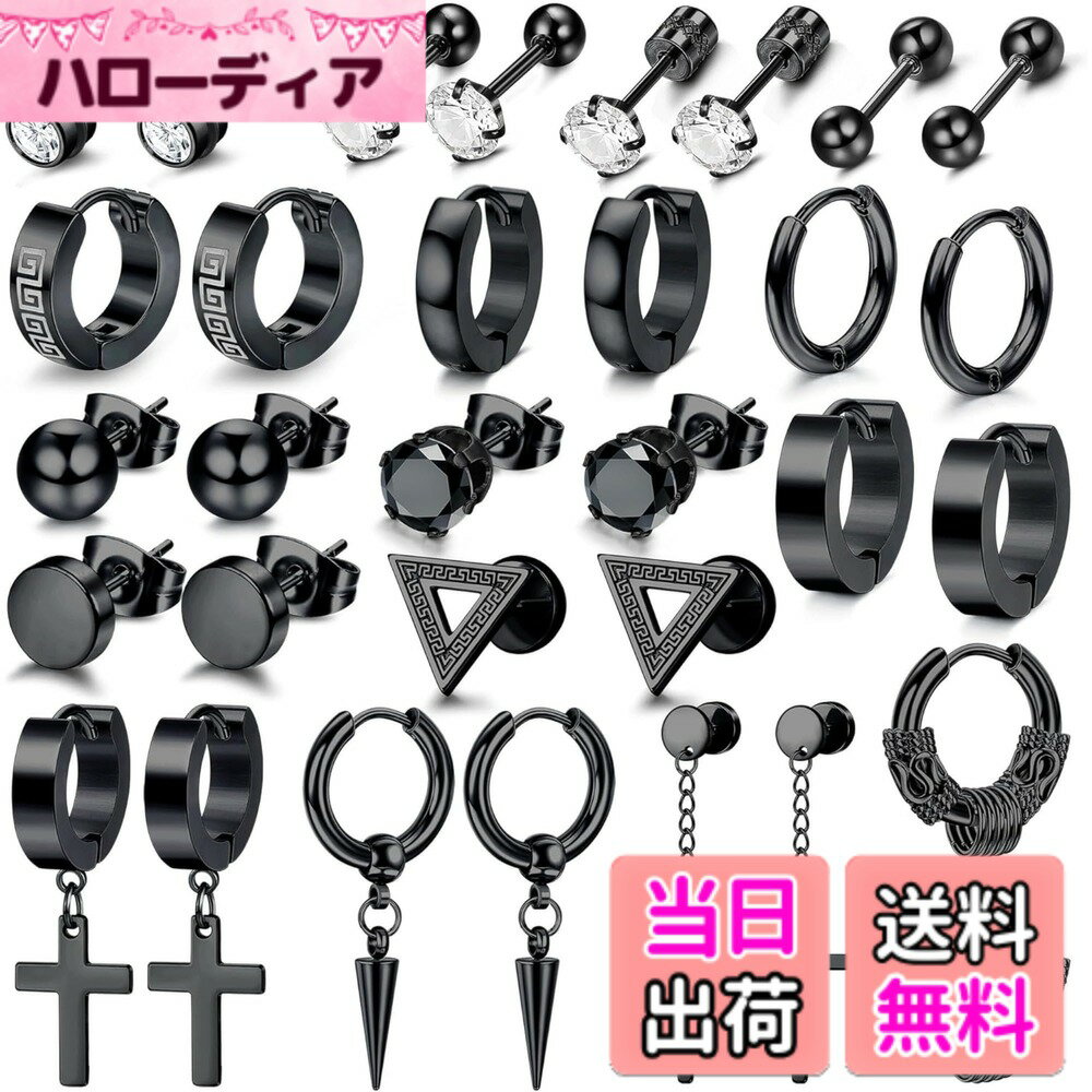 【送料無料】Jstyle 16ペア ピアス メンズ スタッドピアス フープ ブラック 両耳 セット 男性 リングピアス ステンレス アレルギー対応 トラガス シンプル 日常 色:ブラック、サイズ:通用 2,940 ~