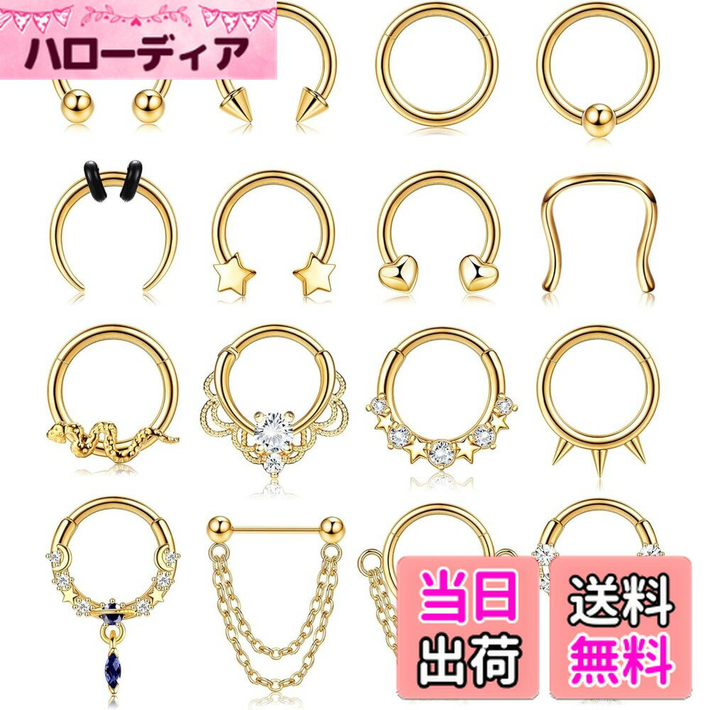 【送料無料】[Jstyle] 16点 鼻 リング レディース メンズ 軟骨 16G シルバー ブラック ゴールド ジュエリー ホースシュー クリッカー ダングル ノーズ リング フープ サージカル スチール ヘリックス 軟骨 フープ ピアス トラガス ダイス セプタム ノーズ 色:ゴールド 4,492 ~