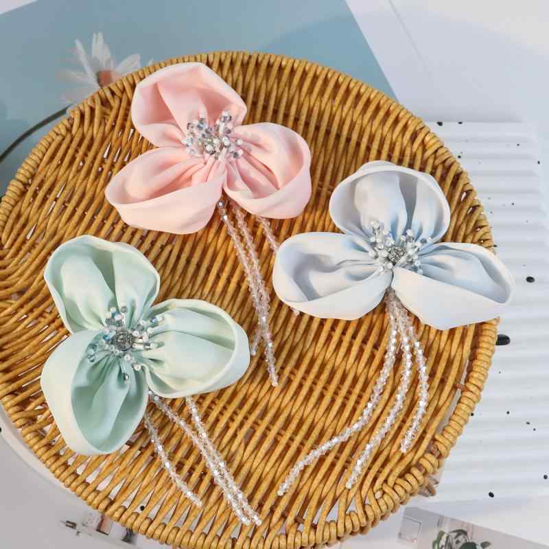 ・カテゴリ: ヘアクリップ・加工方法: 手編み・素材: チュール・: フラワー・カラー展開: ベージュ、パープル、ピンク、ブルー、ブラウン