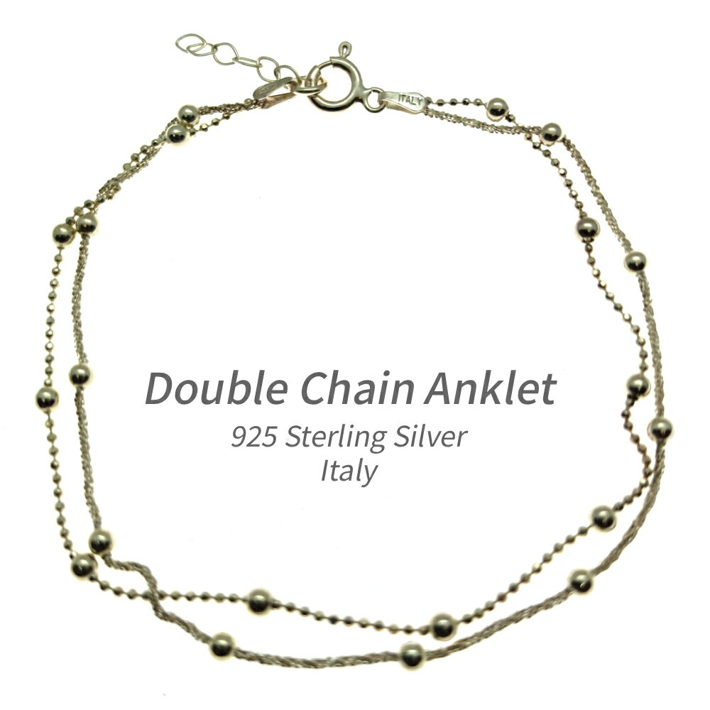 大人の魅力を引き立てるダブルチェーンのアンクレット。 925シルバーの華奢なチェーンが2連、足元にさりげない輝きをプラスします。 2cmのアジャスター付きで、ぴったりのサイズに調整可能。 材質:シルバー925 全長:約220mm?20mmアジャスター 重さ:約3.6g 原産国:イタリア 丁寧なラッピング、そして送料無料で大切にお届けします。