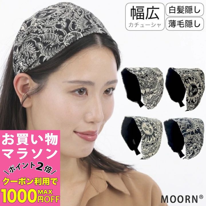 よく一緒に購入されている商品ヘアバンド 幅広 13カラー 無地 幅広 シン690円日本製 幅広 カチューシャ 黒 ブラック 幅広1,850円カチューシャ 幅広 レディース 通気性 カチュ2,030円? ヘアアクセサリー【MOORN】 大人可愛いレースの幅広カチューシャ。 大人っぽく落ち着いた色味で髪に馴染みます!アップスタイルやダウンスタイルなど、ヘアアレンジのポイントにお使いいただけます。 先端部分を【サテン巻き布タイプ】【シリコンカバータイプ】の2タイプからお選びいただけるようになりました。 【母の日】【敬老の日】【誕生日】【ちょっとしたお礼】に「いつもありがとう」感謝の気持ちを込めてギフトにも喜ばれます。 気になる白髪や薄毛をおしゃれに隠したい──そんなお声に応えて誕生した【極幅レースカチューシャ】。 従来の幅広カチューシャよりもさらに2〜3cm幅を広げた「極幅」設計で、気になる箇所をしっかりとカバーできるようになりましました。 カラー展開は、シックで落ち着いた大人のための上品カラーをご用意。 甘すぎず、シーンを選ばずお使いいただけます。 【こんな人におすすめ!】 ・ 白髪・薄毛が気になるけど、さりげなくカバーしたい! ・通常のカチューシャでは幅が足りず、隠しきれない… ・長時間つけても痛くなりにくいものを探している ・ナチュラルで上品な見た目のヘアアクセサリーを求めている ※隠したいポイントや頭の大きさによっては全て隠せない場合がございます。 ※カチューシャの見た目の幅の広さや締め付け感などは、頭の大きさや髪のボリューム、着け方(着ける位置)によって異なります。 サイズがきつい場合は、ご使用をお控えください。 ※着けたままの就寝など、長時間のご使用はお避けください。 ※水濡れ・汗・摩擦などにより、色落ちが発生する場合がございます。 ※無理に広げると破損や形状変化の原因となります。 ※小さいお子様の手の届かないところに保管してください。 【極幅カチューシャに生地違いの新シリーズが数量限定で登場!】 従来のレース調生地の雰囲気はそのままに、イタリア製生地を使用したワンランク上の仕上がりが特徴です。 ●通常品よりわずかに厚みがあり、しっかりとした質感 ●発色が美しく、一つ一つの柄のアウトラインが強調されており、存在感のある仕上がり [イタリア製生地 素材]ポリエステル39%・レーヨン46%・ナイロン15% ブランドMOORN/モーン 商品名(モチーフ)カチューシャ(極幅) カラー(モチーフ部分)アッシュブラウン・ブラック・オリーブグリーン・アッシュブラック ※画像と実際の商品の色や質感が違って見える事があります。 ※カラー名はメーカー指定です。 参考程度にお考えください。 サイズフリーサイズ頭周り:約38cm トップ幅:約15〜16cm※最大幅は入荷時期や個体によって差異がございます。 ご了承ください。 仕様フィニッシュ:サテン巻き布 or シリコンカバー 関連商品≫ その他カチューシャ・ヘアバンドはこちら ≫ その他ヘアアクセサリーはこちら 【関連ワード】カチューシャ 幅広 レース メッシュ 花柄 痛くない 痛くなりにくい シリコンキャップ付き シリコンカバー付き 滑りにくい 滑らない ヘアアイテム ヘアアクセサリー レディース ヘアアクセ 白髪隠し 薄毛隠し 髪留め 髪飾り 洗顔 前髪止め ヘアバンド ヘッドバンド ヘアーバンド ヘアーアクセサリー ヘアアクセ ヘアアレンジ 女性 大人 10代 20代 30代 40代 50代 60代 春 春用 夏 サマー 夏用 春夏 春夏用 夏場 春夏秋冬 オールシーズン ショートヘアー ロングヘアー シンプル カジュアル フォーマル おしゃれ お洒落 ギフト プレゼント 母の日 敬老の日 外出 室内 家 自宅 屋内 メイク お化粧 まとめ髪 洗顔 汗止め 汗どめ 頭 額 汗対策 汗かき 寝ぐせ隠し 人気 ファッション コーデ 太め 太い 前髪 頭が大きい 頭が小さい ブランド:MOORN モーン ※発送に関するご注意※ ●この商品は「宅配便 送料無料」です。 ※厚みの制限を超えるため、メール便での発送はできません。 ご了承ください。 宅配便送料無料※沖縄・離島を除く 類似商品はこちらカチューシャ 幅広 レディース 通気性 カチュ2,030円?カチューシャ 幅広 リーフ 柄 幅広い 黒 ブ1,880円ワイド カチューシャ ネイビー 紺 ベージュ 1,790円カチューシャ 幅広い 黒 ブラック ベージュ 1,999円カチューシャ 幅広 ヨーロッパ伝統柄 太陽 イ3,190円レース カチューシャ ネイビー 紺 ベージュ 1,980円カチューシャ 幅広 黒 ブラック 花柄 幅広い2,980円カチューシャ 幅広 厚手 プリーツ 黒 ブラッ1,890円レース カチューシャ ブラウン ベージュ グレ1,980円新着商品はこちら2026/2/3リボン バレッタ Lサイズ グログラン調 贅沢1,480円2026/1/31バレッタ リボン 大きめ フォーマル Lサイズ1,480円2026/1/14Uピン 3点セット セット 小粒パール ビーズ1,199円2026/02/06 更新 類似商品はこちらカチューシャ 幅広 レディース 通気性 カチュ2,030円?カチューシャ 幅広 リーフ 柄 幅広い 黒 ブ1,880円ワイド カチューシャ ネイビー 紺 ベ