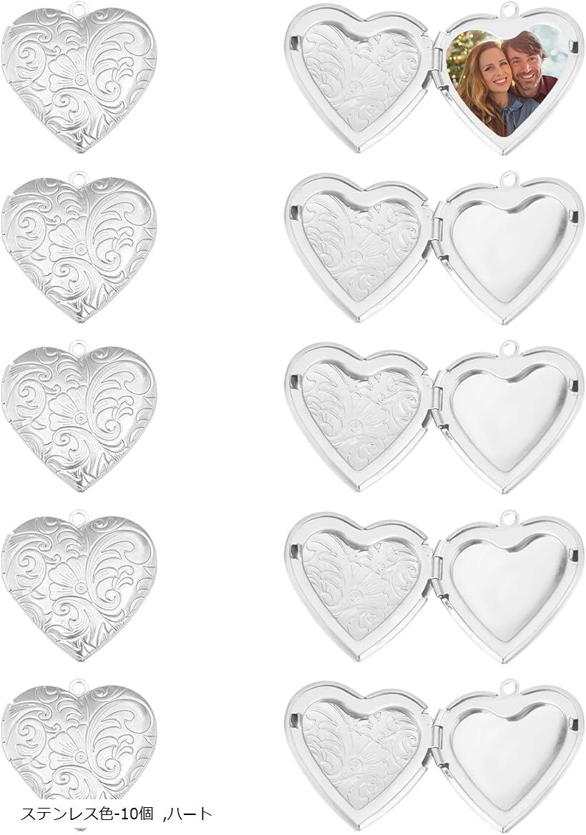 10個 29x29x7mm 304ステンレス製ロケット チャーム ロケットペンダント 写真入れ ネックレス 銀色 金属色 メタルチャーム 金属チャーム ジュエリー 垂れ飾り アクセサリーパーツ (ステンレス色-10個, ハート) 1,780 ~