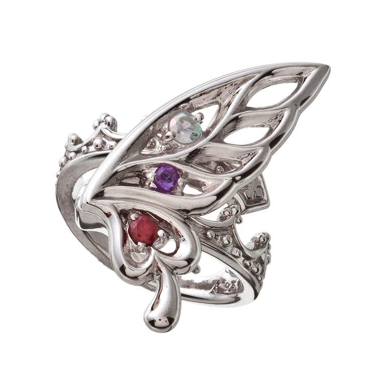 指先に軽やかな風を運ぶ、蝶とクラウンのリング。 虹色に揺らめくミスティッククォーツ、深紅の天然ガーネット、気品ある天然アメジストを、透け感のある翼に点在させました。 繊細な透かしと微細な粒の装飾を重ね、光が抜けて表情を変える立体設計。 細い王冠のリングが羽を抱くように巻き付き、フリーサイズで心地よくフィットします。 地金はシルバー925にロジウムメッキを施し、明るい艶と変色しにくさを両立。 アトリエで熟練の手が一点ずつ成形・彫り・磨きを重ね、エッジの丸みや厚みまで丁寧に整えました。 蝶は“美しさ”と“成長”の象徴。 日常の装いに透明感と気品を添える、モダンで詩的なアートピースです。 単品でも重ね付けでも、指先を印象的に彩ります。 ■素材:シルバー925/ロジウムメッキ/アメジスト・ガーネット・ミスティッククオーツ■縦:28mm(モチーフサイズ)■横:15mm(モチーフサイズ)■厚:7mm■重:6.9g■発送時リングサイズ:11号※号数によって多少見え方が異なる場合がございますので予めご了承ください。 ※お使いいただいている液晶モニターにより実際の商品と色味が異なって見える場合がございます。 予めご了承ください。 返品・交換について購入後の交換は受け付けておりません。 予めご了承ください。 返品を希望される場合は購入履歴一覧の「ショップへの問い合わせ」よりお問い合わせください。 =========================複数配送先指定について1件の注文に対して、異なる住所への配送は対応出来かねます。 恐れ入りますが、異なる住所へ配送をご希望の場合、配送先毎に分けて注文いただきますようお願い申し上げます。 【アクセサリーMEN】13号 【10%OFFクーポン!2/10(火)1:59まで】ArtemisClassic バタフライクラウンリング/アルテミスキングス アクセサリー 11,000 ~
