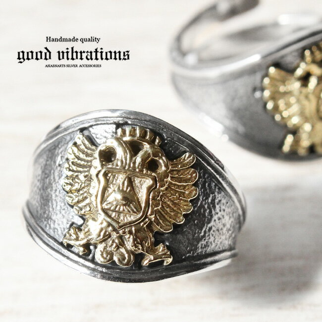 【期間限定10%オフ】good vibrations グッドバイブレーション シルバー925×ブラス 真鍮 イーグルヘッド フェザー シルバーリング サイズフリー SILVER925 メンズリング レディースリング 指輪 ネイティブ 6,075 ~