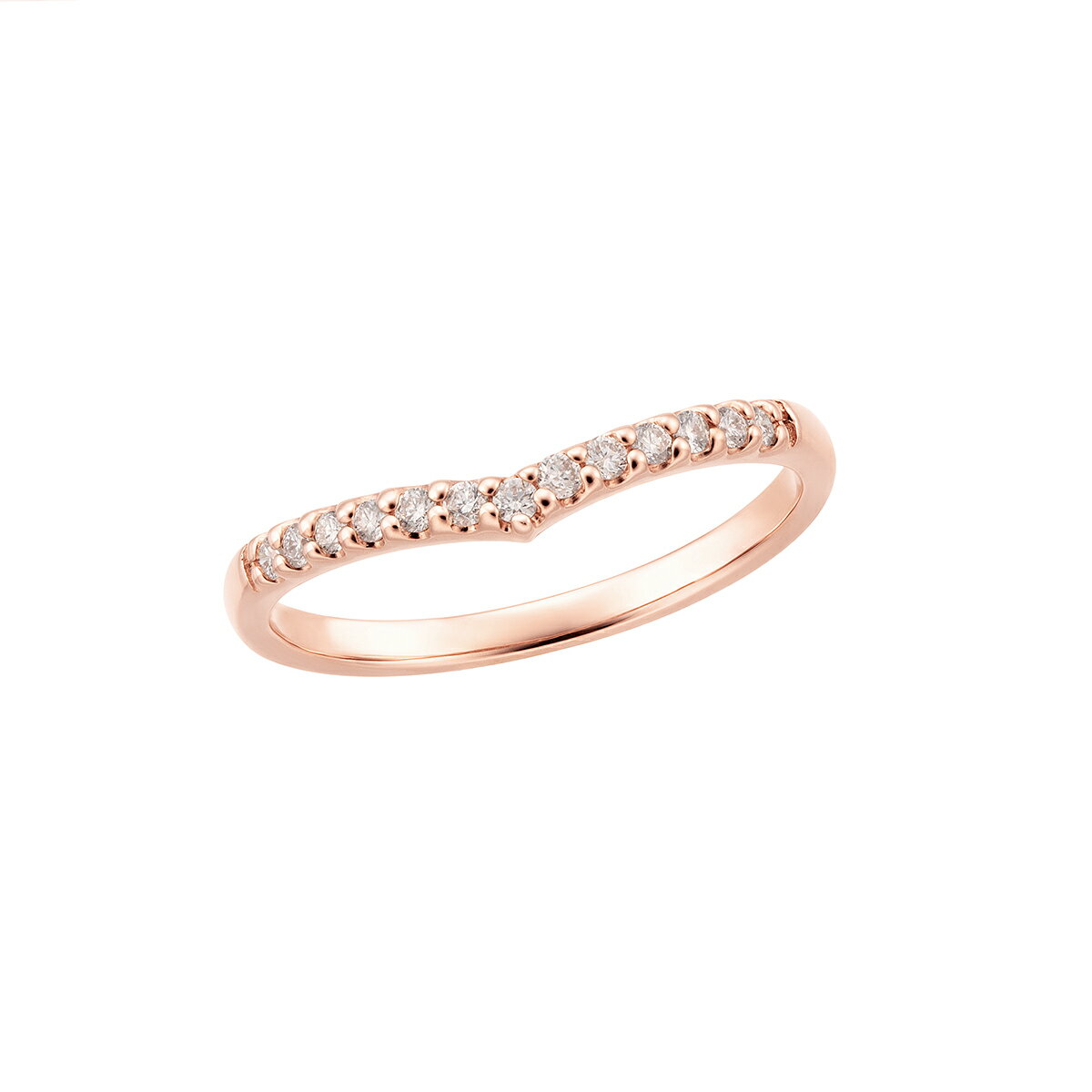 ダイヤモンドがきらきらと輝くピンキーリング。 スタイリッシュなV字のデザインが指をすっきり長く魅せてくれます。 飽きの来ないシンプルなデザインは、毎日身につけたくなるアイテム。 地金素材:K10PG使用宝石:ダイヤモンド幅:約1〜1.5mm※こちらのリングは【筆記体】での刻印は出来かねます。 予めご了承くださいませ。 ※サイズガイドはこちら※有料ケースはこちら K10ピンクゴールドダイヤモンドリング(ピンキーリング) 35,000 ~