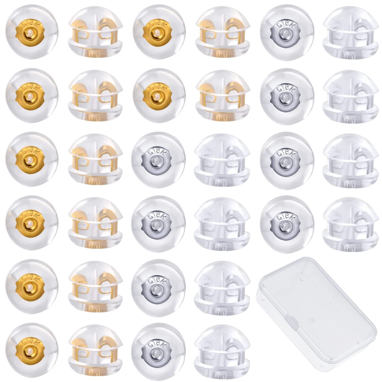 【送料無料】HUAZONTOM ピアス キャッチ シリコン 落ちない 16ペア(32個)セット K18メッキ 金属アレルギー 対応 透明収納ボックス付き イエローゴールド+ホワイトゴールド 1,579 ~