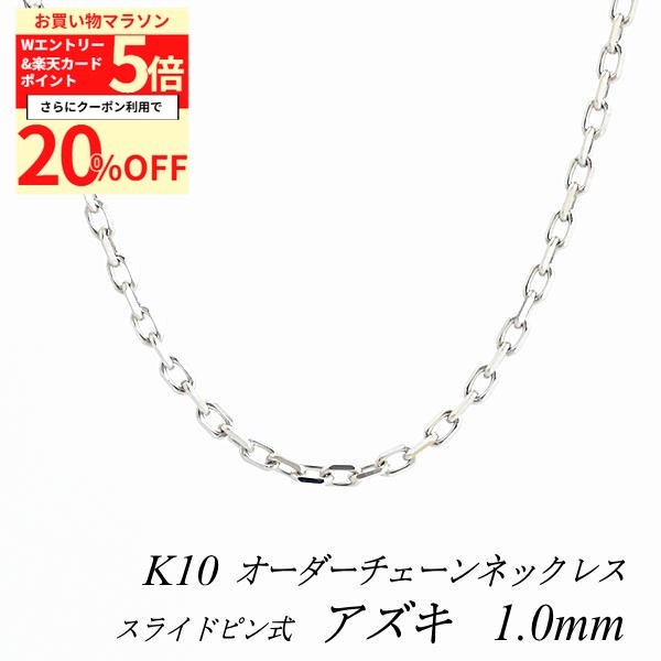 【20%OFFクーポン+Wエントリー&楽天カードでP5倍23:59まで】10金ネックレス 10金 K10 10K アズキチェーン 1.0mm スライドピン式 長さ選べるオーダーチェーン 40cm〜120cm 45cm 50cm 55cm 60cm 日本製 ホワイトゴールド ロングネックレス 10金 57,808 ~
