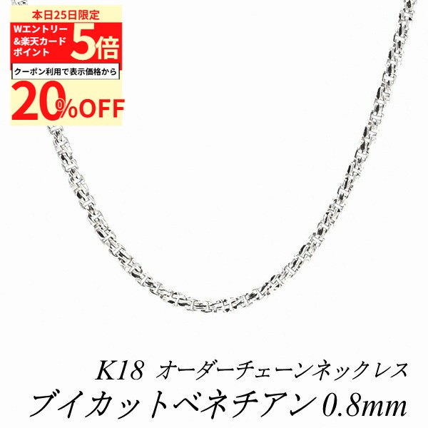 【20%OFFクーポン+Wエントリー&楽天カードでP5倍23:59まで】18金 ネックレス ブイカットベネチアンチェーン 0.8mm 長さ選べるオーダーチェーン 40cm〜120cm 45cm 50cm 55cm 60cm 18金 K18 18K ホワイトゴールド 147,693 ~
