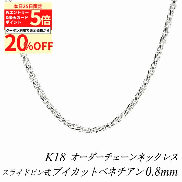 【20%OFFクーポン+Wエントリー&楽天カードでP5倍23:59まで】18金 ネックレス ブイカットベネチアンチェーン 0.8mm スライドピン式 長さ選べるオーダーチェーン 40cm〜120cm 45cm 50cm 55cm 60cm 18金 K18 18K ホワイトゴールド 166,693 ~