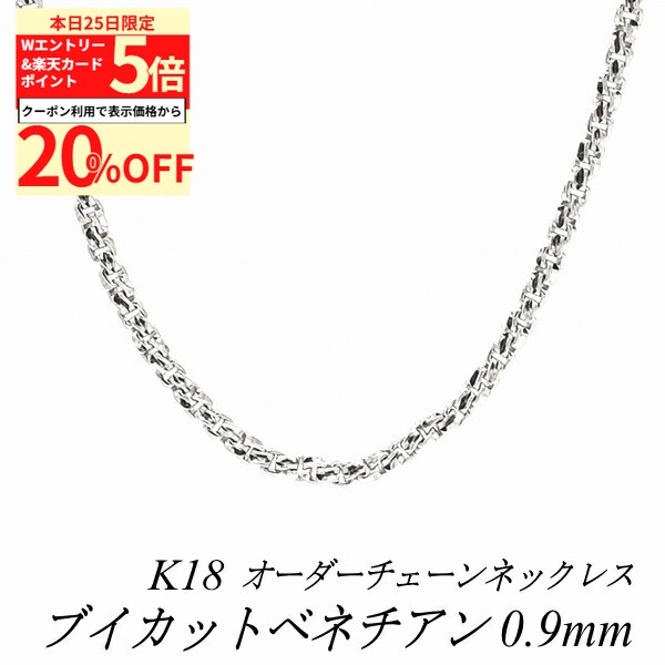 【20%OFFクーポン+Wエントリー&楽天カードでP5倍23:59まで】18金 ネックレス ブイカットベネチアンチェーン 0.9mm 長さ選べるオーダーチェーン 40cm〜120cm 45cm 50cm 55cm 60cm 18金 K18 18K ホワイトゴールド 167,745 ~