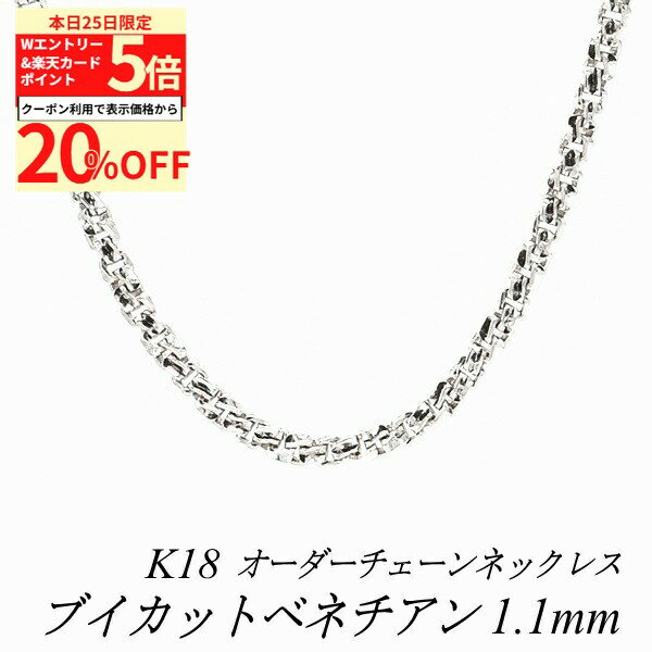 【20%OFFクーポン+Wエントリー&楽天カードでP5倍23:59まで】18金 ネックレス ブイカットベネチアンチェーン 1.1mm 長さ選べるオーダーチェーン 40cm〜120cm 45cm 50cm 55cm 60cm 18金 K18 18K ホワイトゴールド 229,868 ~