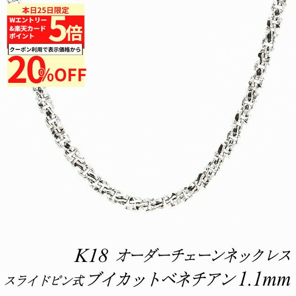 【20%OFFクーポン+Wエントリー&楽天カードでP5倍23:59まで】18金 ネックレス ブイカットベネチアンチェーン 1.1mm スライドピン式 長さ選べるオーダーチェーン 40cm〜120cm 45cm 50cm 55cm 60cm 18金 K18 18K ホワイトゴールド 248,868 ~
