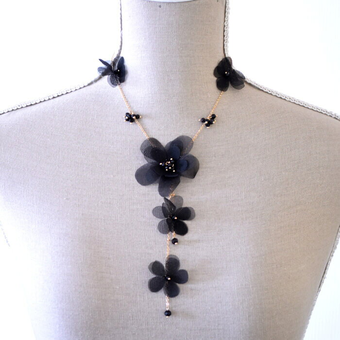 【30%クーポン1:59まで】ブラック フラワー ネックレス レディース 上品 華やか 立体花モチーフ ドレスに映える パーティーアクセ 結婚式 二次会 フォーマル 2,970 ~