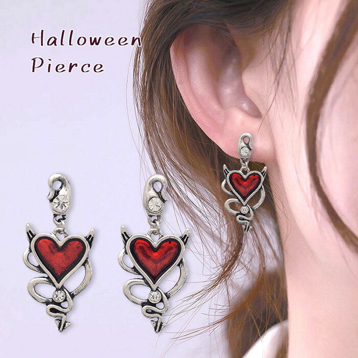 【30%クーポン1:59まで】ピアス ハロウィン ハート レッド シルバー ハロウィンパーティー デビル 悪魔 1,210 ~