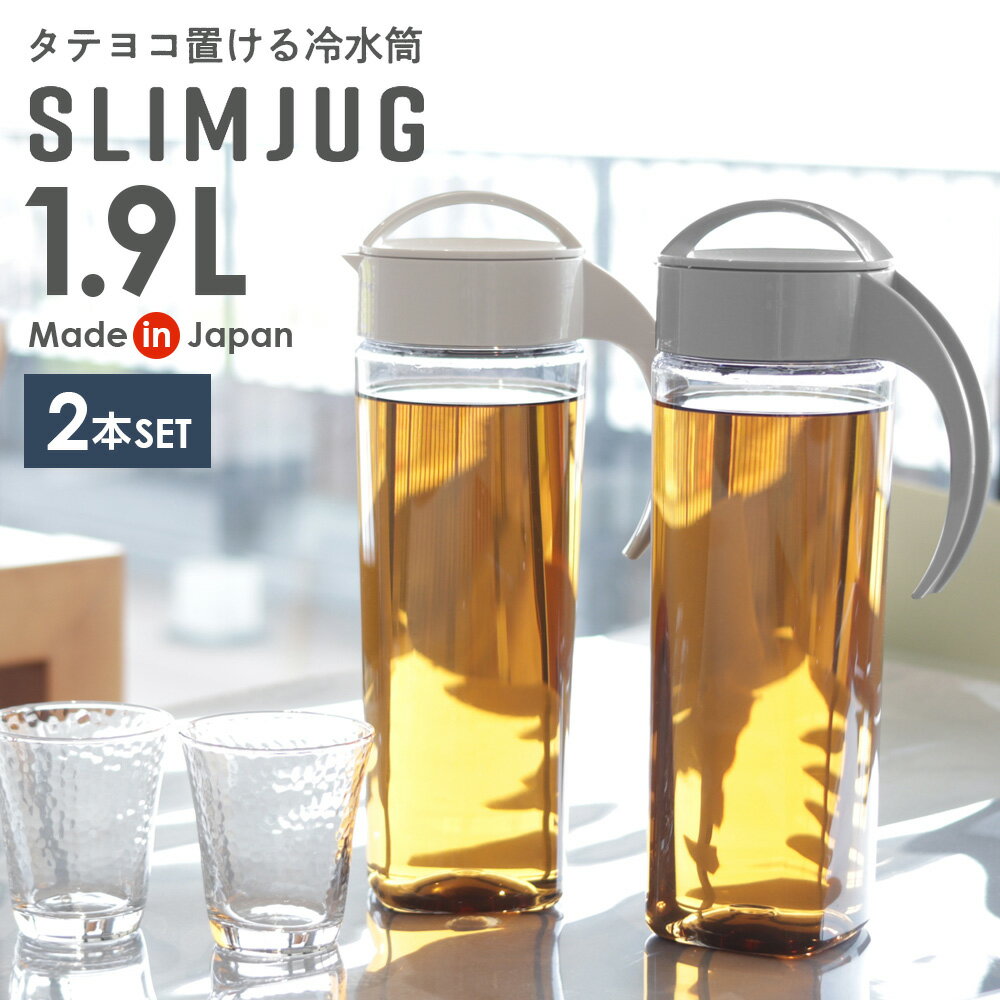 大人気のスリムジャグが大容量に!タテにもヨコにも置ける、大容量1.9Lサイズの麦茶ポット。 【2本セット】グレーとベージュの、落ち着いた2色のカラーからお選べいただけます。 横置きOK!横倒しにして冷蔵庫の棚にも収納できます。 冷蔵庫のスペースを有効活用!冷蔵庫のドアポケットOK片手でも持てる便利な取っ手付き。 本体はスリム形状なので冷蔵庫のドアポケットに収納できます。 漏れにくく開け締めしやすい注ぎ口は、フタをひねって開けるネジ式でしっかり閉まって液モレがありません。 お手入れラクラクシンプル構造でパーツが少なく、広口で奥まで手が入るので、お手入れ簡単。 熱湯OK本体の耐熱温度は100度。 熱湯をそのまま注ぐことができます。 ※熱湯を入れてフタをすぐに閉めないで下さい。 日本製使って安心の日本製です。 ご注意電子レンジ・食洗機ではご使用いただけません。 冷凍庫には入れないで下さい。 ネジキャップ上の矢印を注ぎ口にあわせてご使用ください。 選べるカラー:グレー / ベージュ1本あたりサイズ(約)幅15×奥行10.5×高さ31cm1本あたり容量(約)1.9L1本あたり重量(約)321g材質本体/AS樹脂 フタキャップ/ポリプロピレン パッキン/シリコーンゴム耐熱温度本体/100度 フタキャップ/120度 パッキン/140度耐冷温度-20度製造国日本メーカータケヤ化学工業商品バリエーション 麦茶ポット タケヤ スリムジャグ 1.9L 2本セット | 耐熱 横置き 大容量 洗いやすい 冷蔵庫 ポケット 日本製 広口 持ちやすい おしゃれ 倒して 寝かせて 置ける ピッチャー 冷水筒 冷茶ポット 1,980 ~