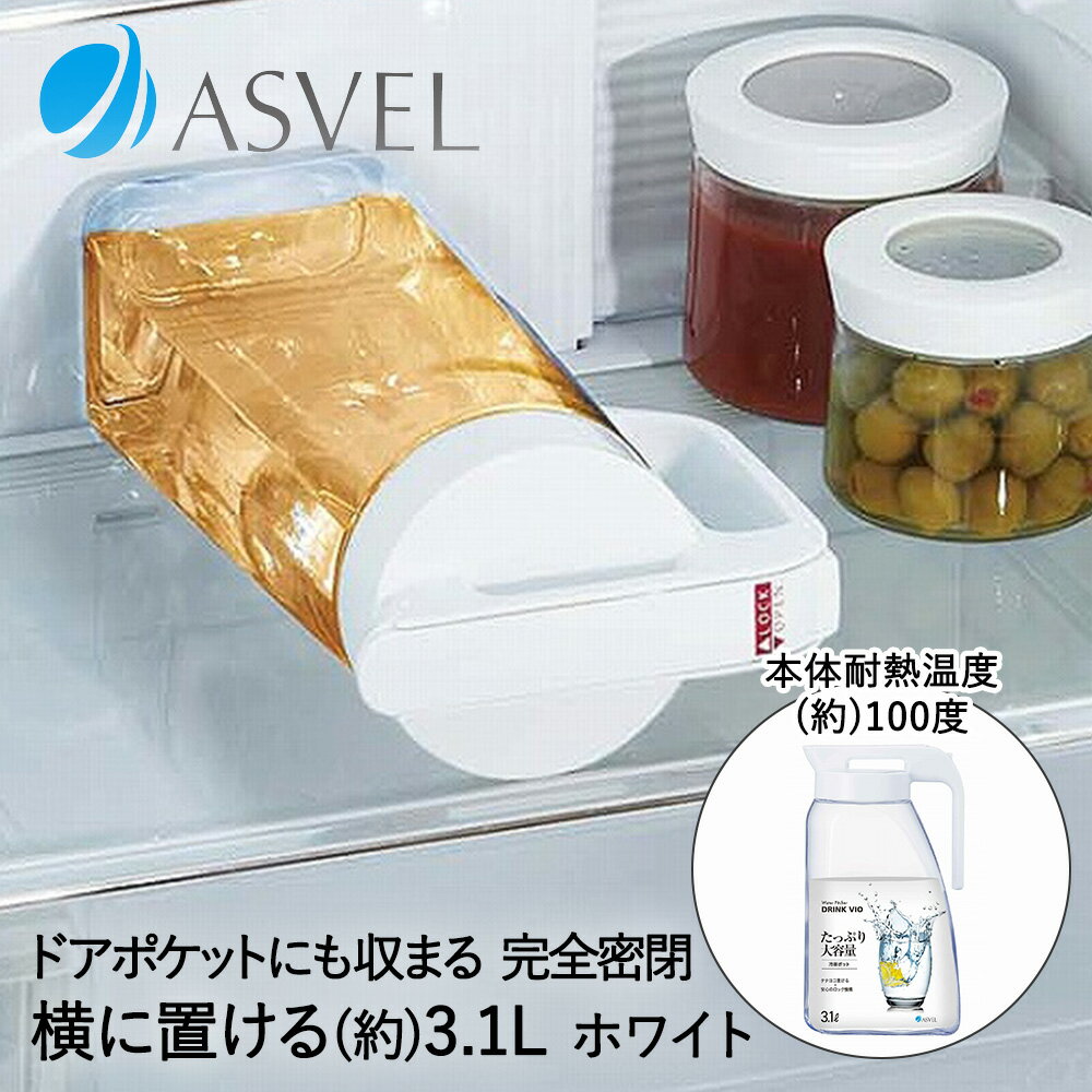 【 ポイント5倍 1/9(金)20:00〜1/16(金)01:59まで 】 スリム 大容量 冷水筒 3.1L ドリンク・ビオ 3100K ホワイト アスベル | 横置き ポット 縦置き ピッチャー ボトル 冷蔵庫 水出し スリムジャグ 耐熱 洗いやすい 水差し 麦茶 お茶 ウォ 1,290 ~