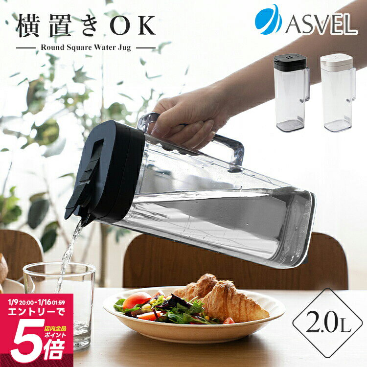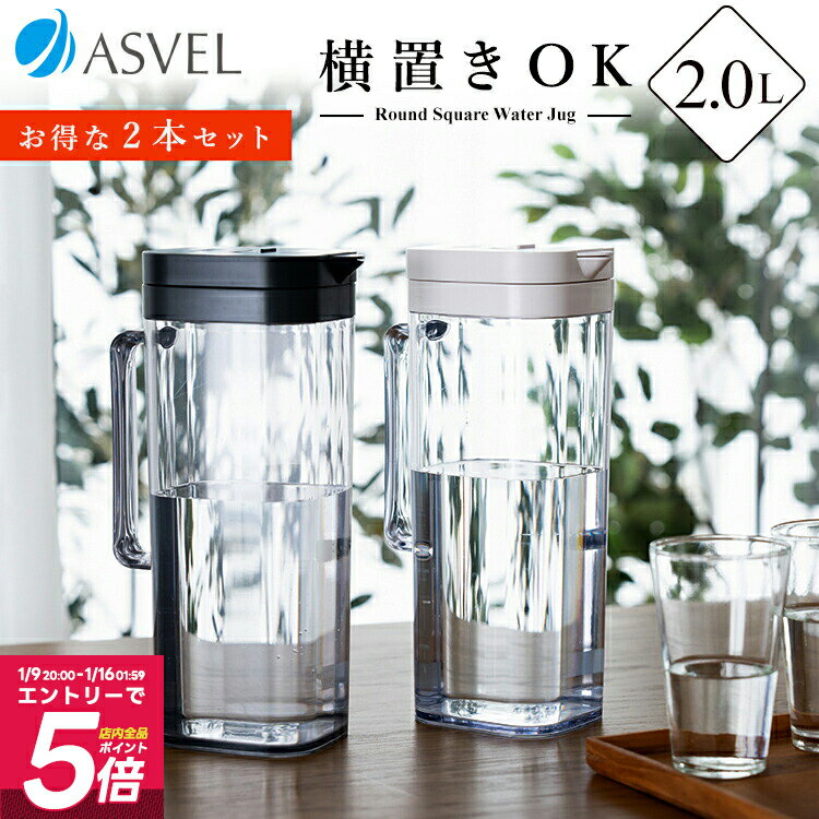 キッチンをオシャレに彩るウォーターピッチャーが登場! 安定した角型形状で持ちやすいハンドル付。 横置き可能、ワンプッシュ操作、広口など、オシャレだけではない機能も満載です。 水漏れを防ぐ完全密封のパッキン付きで、寝かせても漏れないから冷蔵庫でも横置きOK。 また耐熱仕様で、麦茶などの煮出しも可能。 大容量なのにスリム設計。 前ドアポケットにもすっきり収納できます! 広口なので中まで手を入れて洗えて清潔!フタの栓やパッキンも取り外して洗えます。 注ぎ口に触れずに開閉ができるので、飲むときも衛生的♪ ファミリーに最適、たっぷり入り、ローテーションに対応できる【2.0L】2本セット 容量 2.0L サイズ 幅15.6×奥行10.0×高さ28.7cm 材質 本体・本体カバー=AS樹脂、フタ・フタカバー=ポリプロピレン、栓・止め具=ABS樹脂、フタパッキン・栓パッキン=シリコーンゴム\ 他の形状も横置きOK! / -関連商品- ランキング受賞 冷水筒 耐熱 ピッチャー 横置き 2リットル 2L 洗いやすい プラスチック おしゃれ 麦茶ポット 水差し 新生活 【 アスベル ドリンク ビオ ASVEL VIO SP200 2本セット 】 2,798 ~