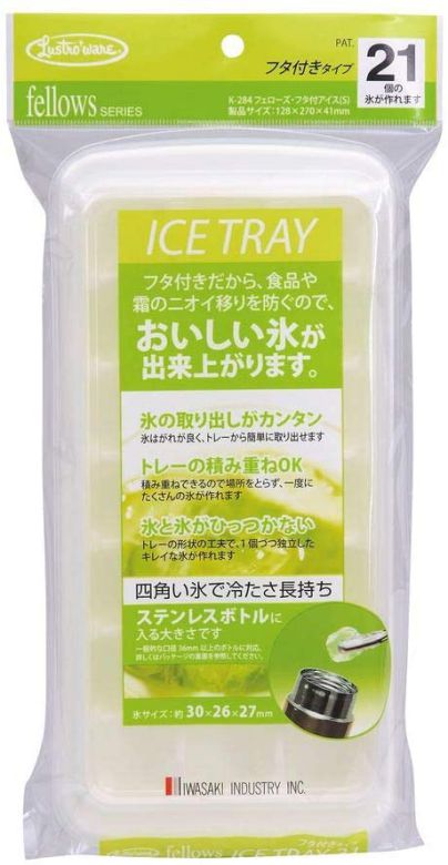 商品名フタつきアイストレー K-284 WLK-284 WL 日本製 岩崎工業商品説明材質:ポリプロピレン商品寸法:27 x 12.8 x 4.1 cm氷を作るのに便利なアイストレー重ねてもズレにくいフタ付冷蔵庫からのニオイ移りを防止満水状態でもそれぞれ独立したきれいな氷を作ることができるフタ、本体の両端面には出し入れに便利な持ち手付氷取り数21ブロックステンレスボトルに入る大きさの氷一般的な口径36mm以下のボトルに対応。 ニオイ移りを防止フタ付で積み重ねOK。 また、冷蔵庫からのニオイ移りを防ぎ、おいしい氷が作れます。 また、長期保存しても霜などが付きにくく、氷をおいしく保てます。 独立したキレイな氷に間仕切りとセンターレールな高さ設定の工夫により、満水状態でもそれぞれ独立したキレイな氷を作ることができます。 おすすめ商品 フタつきアイストレー K-284 WLK-284 WL 蓋付き 岩崎工業 1,398 ~