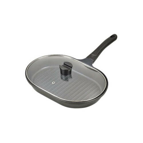 ●底面に溝が付いているから脂が落ちる●大きな魚も焼けるワイドサイズ●丈夫なブルーダイヤモンドコーティング●表面加工:内面/ふっ素樹脂塗膜加工、外面/焼付け塗装●材質:本体/アルミニウム合金、底部/鉄溶射加工、取っ手/フェノール樹脂(耐熱温度150度)、蓋;強化ガラス製器具(全面物理強化)、金属部/ステンレス鋼、つまみ/フェノール樹脂(耐熱温度150度)●サイズ:全長445*幅340*高さ105mm●重量:1593g●事業者向け商品です。 リニューアルに伴い、パッケージ・内容等予告なく変更する場合がございます。 予めご了承ください。 広告文責:楽天グループ株式会社050-5212-8316 フィッシュグリルNEO ブルーダイヤモンドコートIH対応ガラス蓋付ワイドパン HB-2331 9,375 ~