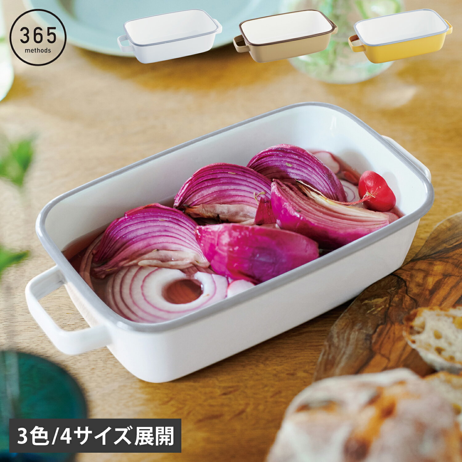 商品説明 【シンプルで長く愛用できるいいもので毎日をちょっとアップデート。 毎日使いの暮らしのツールを提案するブランド 365methods】 【スクエア】 ハンドル付きホーローオーブンディッシュ「スクエア」。 金属の強度とガラスの光沢・清潔さを併せ持つ琺瑯(ホーロー)製です。 食材のニオイ移りがしにくく酸や塩分にも強いため、保存容器として最適です。 また、フタを外せばオーブン調理が可能で、グラタンや焼き菓子を作り、そのまま食卓へサーブできるデザイン性が魅力。 冷蔵庫での保存から調理、食卓までひとつでこなせる万能なキッチンウェアです。 【レクタングル】 ハンドル付きホーローオーブンディッシュ「レクタングル」。 長方形のサイズ感は、おかずの作り置きやラザニアなどのオーブン料理に最適です。 琺瑯(ホーロー)は表面がガラス質のため雑菌が繁殖しにくく、食材の風味を損ないません。 フタには高品質なポリプロピレンを使用し、保存にも便利。 シンプルで清潔感のあるバイカラーデザインは、キッチンや食卓をスタイリッシュに彩ります。 【浅型S】 ホーローオーブンディッシュ「浅型S」。 コンパクトなサイズで、少量の常備菜保存やフルーツのカット保存、お弁当の下ごしらえに便利です。 ホワイトベースにハンドルのアクセントカラーが効いたデザインは、そのまま器としてサラダを盛り付けても絵になります。 酸や塩分に強く、汚れも落ちやすいため、毎日清潔にお使いいただけます。 【浅型M】 ホーローオーブンディッシュ「浅型M」。 広めの底面と浅めの設計で、マリネや揚げ物のバットとしても使いやすいサイズです。 琺瑯素材は熱伝導率が高く、冷却性にも優れているため、ゼリーや寒天などの冷やし固めるスイーツ作りにも活躍します。 ハンドル付きでミトンをしていても持ち運びやすく、機能性とデザイン性を兼ね備えたアイテムです。 ブランド名 / 商品名 365methods サンロクゴメソッド / スクエア レクタングル 浅型S 浅型M YYHA YYHB YYHM YYHS カラー ホワイト/ライトグレー:WHITE/LIGHT GREY(W) カフェオレ:CAFE AU LAIT(BE) イエロー/ライトグレー:YELLOW/LIGHT GREY(Y) 素材 / 仕様 本体:ほうろう用鋼板 フタ:ポリプロピレン(縁:熱可塑性エラストマー) オーブン・食器洗浄機・乾燥機可(フタは不可) 電子レンジ不可 セット内容:シール蓋 【容量】スクエア:満水1.8Lレクタングル:満水1.0L浅型S:満水0.9L浅型M:満水1.6L 【重量】スクエア:約530g(本体460g/フタ70g)レクタングル:約350g(本体310g/フタ40g)浅型S:約300g(本体260g/フタ40g)浅型M:約49 生産国 THAILAND サイズ スクエア:幅:24.5cm×高さ:6.2cm×奥行:21.0cm レクタングル:幅:24.0cm×高さ:6.2cm×奥行:13.4cm 浅型S:幅:23.0cm×高さ:4.5cm×奥行:14.2cm 浅型M:幅:27.0cm×高さ:5.3cm×奥行:16.8cm こちらの商品は、メーカー公式の採寸基準で計測しています。 ご購入前に必ずお読みください サイズ・仕様について 平置きして採寸したサイズになります。 商品によっては若干の誤差が生じてしまう場合がございます。 また、商品やブランド等によりサイズが異なります。 (単位はcmになります。 ) 外装箱や商品に若干のへたりや傷がある場合があります。 また、生産工場や生産時期で細かい仕様変更がある場合がありますのでご注意ください。 カラーについて 個体ごとに若干の差異がある場合がございます。 可能な限り現物に近い色味の写真を掲載をしておりますが、お客様のモニターの設定などにより現物との色味に差異が生じる場合もございます。 あらかじめご了承ください。 予約商品の納期発送目安について 予約商品の納期発送目安は、以下の通りになります。 上旬:1日-10日頃発送予定 中旬:11日-20日頃発送予定 下旬:21日-末日頃発送予定 ※目安になりますので、日程が多少前後する場合があります。 類似商品はこちら365methods サンロクゴメソッド 保存4,400円 富士ホーロー やかん 1.6L IH 直火 4,180円 富士ホーロー やかん 笛吹ケトル 1.6L 4,950円365methods ステンレスサラダスピナー4,950円 富士ホーロー やかん 笛吹ケトル 2.1L 6,050円365methods サンロクゴメソッド ミル3,630円 富士ホーロー 角型天ぷら鍋 ワイド フジホー4,950円?365methods ソースパン サンロクゴメ4,730円365methods キャセロール サンロクゴ5,500円2026/01/10 更新 類似商品はこちら365methods サンロクゴメソッド 保存4,400円 富士ホーロー やかん 1.6L IH 直火 4,180円 富士ホーロー やかん 笛吹ケトル 1.6L 4,950円 365methods スクエア レクタングル 浅型S 浅型M サンロクゴメソッド ホーローオーブンディッシュ 保存容器 0.9L 1L 1.6L 1.8L エラストマー製フタ ハンドル付き ガス 直火 オーブン 食洗機対応 琺瑯 ホワイト ベージュ イエロー 白 YYHA YYHB YYHM YYHS 2,530 ~