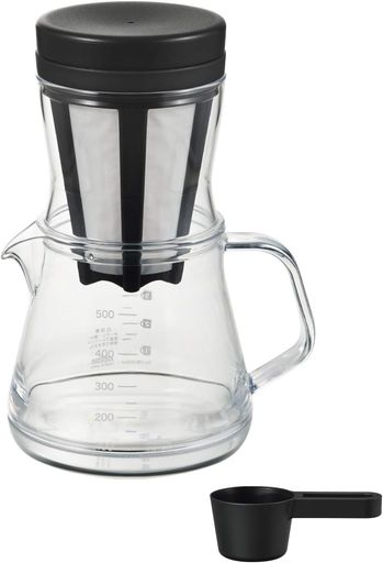 われないプラスチック製コーヒーサーバーにペーパーレスドリッパーがプラス。 水出しコーヒーも楽しめます。 食器洗い乾燥機対応。 ■サイズ: 143×113×196mm本体口径80mm(注ぎ口を除く)■材質: フタ/ポリプロピレン(耐熱温度140℃/耐冷温度−20℃)2WAYドリッパー枠/ポリプロピレン(耐熱温度110℃/耐冷温度−20℃)本体・アタッチメント/飽和ポリエステル樹脂(耐熱温度110℃/耐冷温度−20℃)メッシュ/ポリエステル(225メッシュ)(耐熱温度110℃/耐冷温度−20℃)計量スプーン/ポリプロピレン(耐熱温度120℃/耐冷温度−20℃)■容量: 600ml(満水) 曙産業|AKEBONO コーヒーサーバーストロン 500 2WAY ブラック 1,910 ~