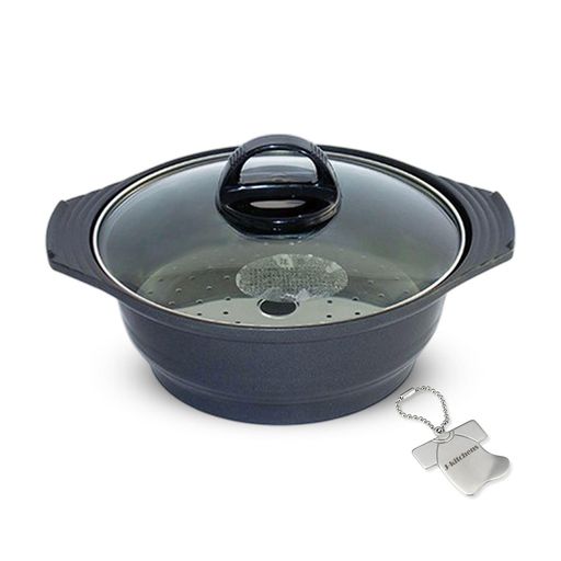 【お届け納期のご注意】 現在予約受付中2026年7月上旬以降 順次発送いたします IH対応ヘルシー蒸し鍋 黒釉 大38,500円(税込)/φ31×h20cm/2700㎖/4.5kg IH対応ヘルシー蒸し鍋 黒釉 小33,000円(税込)/φ27.5×h17.5cm/1800㎖/3.5kg ※空焚きはできません。 付属品:蒸し鍋用トング・レシピ帳(取扱説明書) 直火(ガス火)用のヘルシー蒸し鍋はこちら ヘルシー蒸し鍋 黒 大 ヘルシー蒸し鍋 白 大 ガスの直火だけでなく、IHに対応する土鍋です。 伊賀土鍋の雰囲気そのままにお楽しみください。 アツアツの【蒸し料理】はもちろん、伊賀土の気化熱を利用した【冷やし料理】、「陶製すのこ」を外して【鍋料理】などひとつあればいろいろな楽しみ方が。 一器多様な「ヘルシー蒸し鍋」で、バラエティー豊かな食卓を。 【 卓上で蒸し料理 】 伊賀土の遠赤外線効果と勢いのある蒸気が短時間で食材を蒸し上げ、歯触りのよい美味しい蒸し料理が食卓で楽しめます。 食材の旨み・栄養素は逃がさず、余分な脂は落としてヘルシーに蒸し上げ、たくさんの食材を一緒に調理できます。 【 保冷器に 】 水を十分に含ませた土鍋は、外側から水分が蒸発する時の気化熱で鍋内部が冷たく保たれます。 さらに本体に氷を敷き詰め、「陶製すのこ」に氷と食材を盛れば卓上冷蔵庫に早変わり。 すのこからは余分な水分が落ちるので、食材がべたつくこともありません。 【 蒸し鍋二段活用 】 「陶製すのこ」に乗せる蒸し料理だけでなく、すのこの下の土鍋で同時にもう一品調理をすることもできます。 通常土鍋で湯を沸かし、その蒸気ですのこの上の食材を蒸し上げますが、湯ではなく食材を煮込むことで「蒸し料理」も「土鍋料理」も同時に調理します。 【 土鍋として 】 「陶製すのこ」を外せば、通常の土鍋料理・煮込み料理もお楽しみいただけます。 遠赤外線効果で食材の芯までしっかり熱を通し、美味しく煮炊きができます。 「ヘルシー蒸し鍋」基本の蒸し料理の楽しみ方 (1)本体の7〜8分目まで(「陶製すのこ」の底から2cmくらい下)の水(または湯)を入れます。 必ず水(または湯)を入れてから加熱してください。 空焚きはできません。 (2)本体に「陶製すのこ」とふたをセットし、加熱します。 (3)ふたの穴から勢いよく蒸気が出るまで、十分に沸騰させてください。 ※必ず水(または湯)が沸騰してから食材を入れてください。 (4)ふたを開け、「陶製すのこ」の上に食材を入れます。 再びふたをし、ふたの穴から勢いよく蒸気が出て(3の写真を参照)から1〜4分間で出来上がりです。 ※写真は直火用蒸し鍋です。 IH対応土鍋の取り扱いについて ガスの直火でもご使用いただけます 家庭用ガスコンロでの調理は中火で、業務用ハイカロリーガス器具での調理は中火以下にてご使用ください。 ガスの直火にかけるときは乾いた状態で 土鍋を火にかける前に必ず裏底に水気がないことを確認してください(ひび割れの原因となります)。 ラジエントヒーターでもご使用いただけます ラジエントヒーターの機種によっては沸点に達するまで時間のかかるものがあります。 100V・200VのIH(電磁調理器)に対応しています 長谷園がこだわった「熱伝導率」 鍋底に伊賀土鍋と熱膨張率が同じ肉厚なカーボン製の発熱体を組み込んだIH対応土鍋です。 熱伝導率がよく、食材にムラなく熱を伝えます。 ビルトイン200VのIH(2000W〜3500W)をご使用の方へ (1)空焚き厳禁! (2)焦げつき厳禁! ●水量の少ない調理(カレー・シチュー・炒め物等)や、粘性の高い食材(おもち・雑炊・お粥・うどん・豆乳・豆腐・昆布等)の調理は、底面にくっつきやすくなります。 これらの調理時は、各電機メーカーの取扱説明書に記載されている「700W〜1000W」(200V)の設定で、焦げつかないよう木べら等でかきまぜながら調理してください。 ●水量の多い調理は「2000W」以下の出力設定で、沸騰したら必ず火力を「中」以下に下げてください。 ●ハイパワー(2500W)以上でのご使用はお避けください。 土鍋が損傷する恐れがあります。 長時間のご使用はご注意ください 長時間ご使用されるとIHプレートが変色することがありますが、ご使用上差し支えありません。 洗剤などでふきとってください。 またガス火の場合、土鍋は遠赤外線効果がありますので、強火で長時間ご使用になりますとガス器具やテーブルが高温になったり、ガス器具のリミッターがはたらき、安全のためにガスが止まる場合があります。 鍋をIHにのせる場合は必ずOFFの状態でのせてください ONの状態で鍋をのせても反応しない機種があります。 旧型の機種にはご注意ください 下記の電磁調理器で旧型の機種には使用できない(発熱しない)ものがあります。 ・磁性をもつ(鍋底に磁石がくっつく)鍋しか反応しない機種 ・低周波方式の機種 鍋底裏面の発熱体は金たわし等の硬い物で洗わないでください 傷をつけると通電に支障をきたすことがあります。 敷板には断熱性の高いものをご使用ください 調理直後の土鍋は高温のため、輻射熱によりテーブルを焦がす