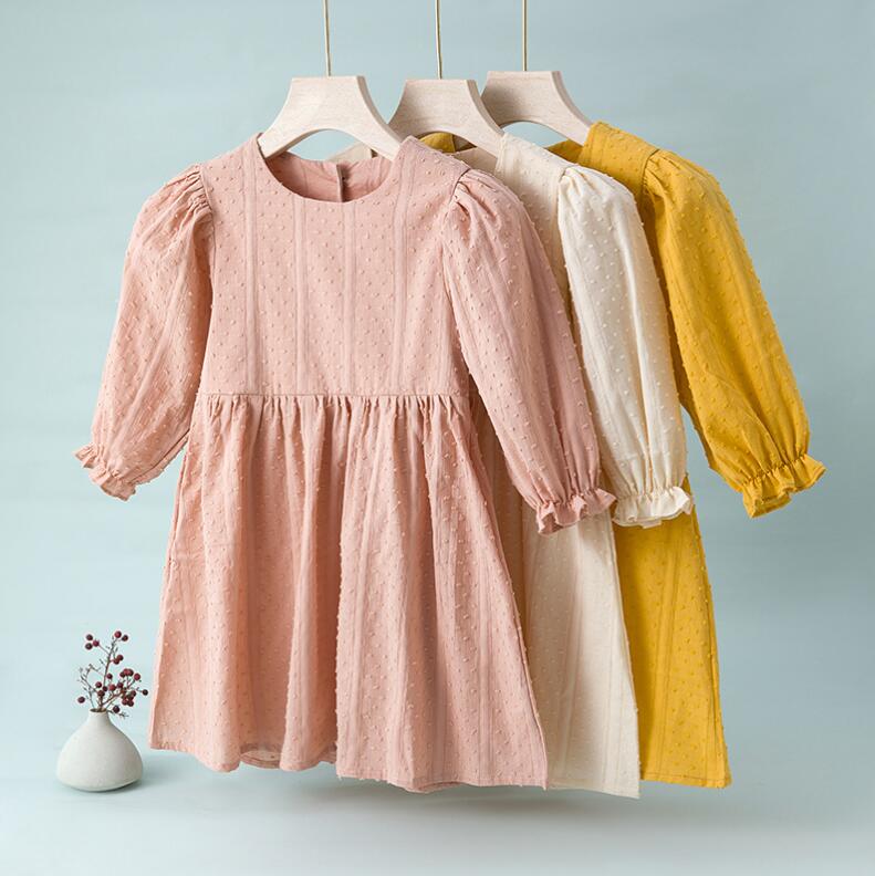 長袖ワンピース 子どもワンピース 綿ワンピース コットン 綿生地 Aライン ゆったり キッズ服 夏服 クルーネック 女の子 女児 可愛いワンピース ナチュラル風 涼しい 通気性 カジュアル 海旅行 無地 80cm 90cm 100cm 110cm 120cm 3色 2,180 ~