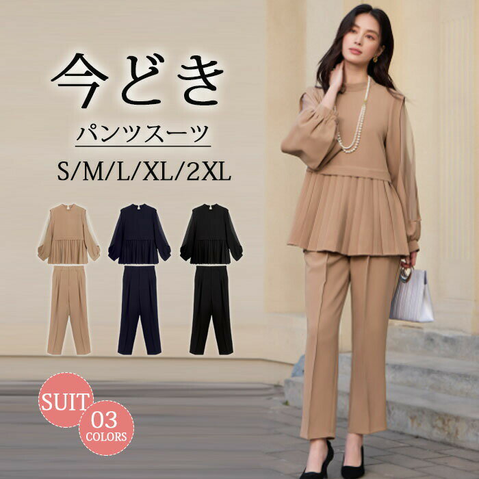 Palebeige Black Navy Detail 商品詳細 トップスとパンツの2点セット シアースリーブのペプラムトップスとすっきり 美脚効果抜群のピンタックパンツのセットアップ きちんと見えするのでオケージョンシーンにも◎ 上品な印象なのに楽な着心地なのが嬉しいポイント 【オケージョン】 ― シーンやスタイルに合わせて着回し自在 ― ・入学式・卒業式 ・七五三・お宮参り ・パーティ ペプラムが気になるヒップ周りをカバー シアースリーブの程よい透け感が高級感のある仕上がりに ペプラムシルエットで気になる部分もカバー。 しわになりにくく着心地もいいので長時間の式典でも安心です。 【カラーバリエーション】 ・ブラック ・ネイビー ・ペールベージュ 【ディテール】 ■トップス ペプラムシルエットが美しく、ボリュームのあるシアースリーブの程よい透け感が高級感のある仕上がりに。 気になる腰回りのカバーもペプラムデザインにお任せ。 ・襟 キーネックで大人の抜け感を。 ・ペプラム 気になる腰回りをカバーしてくれるペプラムデザイン。 ・袖 ボリュームのあるシアースリーブで高級感のある仕上がりに。 袖口はストレッチ性があるのでブラウジングさせてこなれた雰囲気に。 ■パンツ パンツはすっきりシルエットとピンタック効果で脚長に。 きれいめパンツなのに後ろウエストゴムの穿きこみタイプなので動きやすく、小さなお子様連れのママにもおすすめ。 ・ポケット 左右に便利なポケット付き。 ・後ろウエストゴム 後ろウエストはゴム仕様なので簡単に着脱でき、楽な着心地です。 ◆生地 適度なハリ感と柔らかい弾力ある肌触りのソフトダンボールニット。 微光沢の表面が、上品な印象で、シルエットが綺麗に表現できる素材です。 ◆ストレッチ しなやかでストレッチ性がある素材なので動きやすさはもちろん、長時間の着用でもストレスを感じにくい素材になっています。 袖は程よい透け感で上品な光沢あるオーガンジー素材です。 ◆ウォッシャブル 手洗い可能なウォッシャブル仕様 ご家庭で洗えるウォッシャブル生地を使用しているので、クリーニングに出す手間も省け、いつでも洗い立ての着心地でお過ごしいただけます。 洗濯機には入れず、優しく手洗いして下さい。 洗剤はおしゃれ着用の中性洗剤がおすすめです。 サイズ サイズ トップス *着丈 バスト ウエスト 肩幅 袖丈 S7号 66 96 94 34 62 M9号 67 100 98 35 63 L11号 68 104 102 36 64 LL13号 69 108 106 37 65 パンツ 総丈 ウエスト ヒップ 股下 渡り 裾幅 S7号 95 64?104 94 66 27 14 M9号 96 68?108 98 28 15 L11号 97 72?112 102 29 16 LL13号 98 76?116 106 30 17 *=SNP(ショルダーネックポイント) ■サイズガイド■ 素 材 【トップス】 本 体:ポリエステル 55% 綿 40% ポリウレタン 5% 袖別地:ポリエステル 100% 袖裏地:ポリエステル 100% 【パンツ】 ポリエステル 55% 綿 40% ポリウレタン 5% 商品仕様 ◆伸縮性:トップスの袖部分以外あり ◆裏地:【トップス】袖部分のみあり 【パンツ】なし ◆開き具:【トップス】なし 【パンツ】前ウエスト裏インベルゴム仕様 ◆カラー:ブラック/ネイビー/ペールベージュ 備 考 ※商品を平置きにし、メジャーにて手作業による採寸をしております。 若干誤差がございます。 サイズ等で不明な点はお問い合わせください。 ◆レビューは商品到着後でお願いします。 ■ご利用ガイド■ 【期間限定★ポイント&クーポン】\セール中/【洗える/ストレッチ】レディース セットアップ 結婚式 パーティー ママスーツ パンツスーツ パンツドレス セレモニースーツ フォーマル 七五三 卒業式 入学式 ミセス 50代 40代 30代 上品 きれいめ 母親 体型カバー 即日発送 11,266 ~