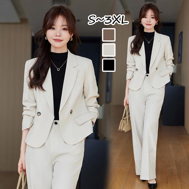 【送料無料】[DYIOPMFGZ] CHUMO スーツ レディース セットアップ 上下 2点セット ジャケット テーラードジャケット ワイドパンツ パンツスーツ 長袖 おしゃれ 気質 エレガント カジュアル フォーマル 通勤 オフィス 結婚 色:ベージュ(ジャケット+パンツ)、サイズ:L 12,492 ~