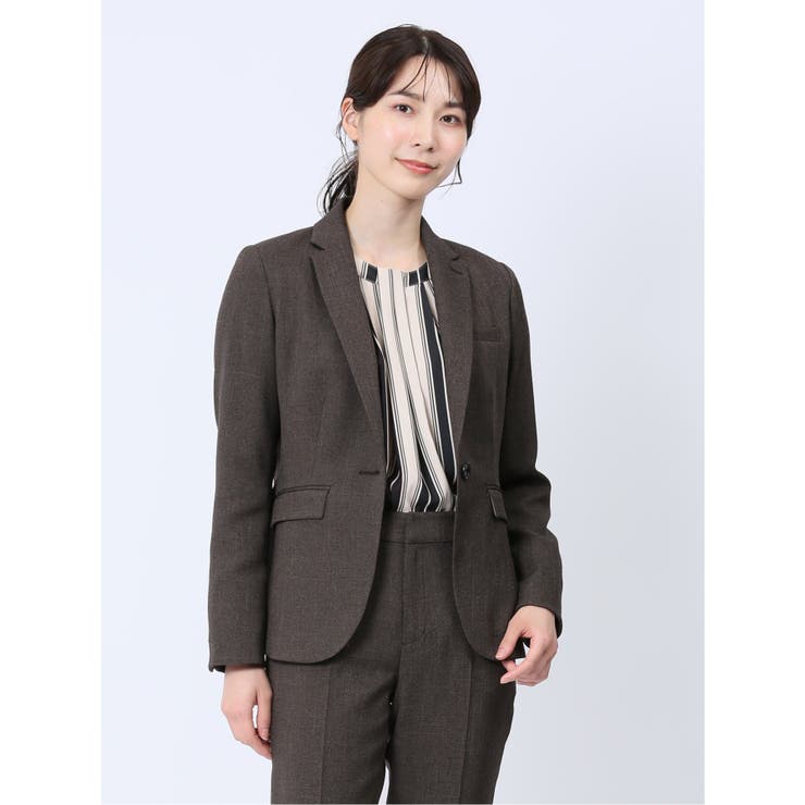 エムエフエディトリアルレディース/m.f.editorial:Womenストレッチシャーク 1ボタンジャケット 茶(セットアップ可能)■素材特徴表地はツイード調の合繊生地を使用しています。 クラシックなシャークスキン組織で控えめな織り柄が特徴です。 裏地は抗菌加工をほどこした、再生ポリエステルのストレッチ生地です。 ■機能【ストレッチ】表地・裏地共に伸縮して、ストレスフリーな着心地。 【ウォッシャブル】ご家庭で洗濯可能。 いつも清潔に着ていただけます。 【イージーケア】洗濯後もシワが入りにくく、アイロンがけも簡単。 ■デザインシーンを選ばず着回せる、シンプルなテーラードジャケットです。 一つボタンですっきりとしたルックスに仕上げています。 ポケット付きなので利便性にも優れています。 ■シルエットボディラインに自然に沿ったベーシックなシルエットで、幅広い年代の方に着ていただけます。 バストからウエストをやや絞ることで、細見え効果もあります。 ■コーディネート定番のドレスシャツや、柔らかなシフォン系のブラウス、フィット感のある綺麗目トップスと合わせるのがおすすめ。 オンオフ兼用で大活躍してくれます。 ■セットアップアイテムは下記品番をご参照ください。 ・ストレッチシャーク タイトスカート 茶:120060953101323・ストレッチシャーク テーパードパンツ 茶:120110953101323フィット感:標準シーズン:秋冬展開カラー:茶(ブラウン)裏地:総裏仕様・袖裏有り*こちらの商品はセット販売ではなく、単品のみの販売となります。 *アテンションタグ・洗濯ネームを御確認の上、着用又は取り扱い下さい。 *光の当たる場所や高温多湿になる場所での保管は避けて下さい。 *使用の有無に関わらず、経年劣化は進行いたしますのでご了承下さい。 *生地の裁断・縫製方法により、写真と同様の柄が出ない場合がございます。 *閲覧デバイス・環境により質感・色味に誤差が生じる場合がございます。 *サイズ詳細S 着丈 58 肩巾 37 バスト 89 ウエスト 74 袖丈 58 袖口巾 12M 着丈 59 肩巾 38 バスト 93 ウエスト 78 袖丈 59 袖口巾 12.5L 着丈 60 肩巾 39 バスト 97 ウエスト 82 袖丈 60 袖口巾 13XL 着丈 61 肩巾 40 バスト 101 ウエスト 86 袖丈 61 袖口巾 13.5※サイズ表に記載の寸法は実寸表記となり、商品に付属の下げ札等に記載の寸法とは異なる場合がございます。 *商品番号:120100953101323返品・交換について購入後の交換は受け付けておりません。 予めご了承ください。 返品を希望される場合は購入履歴一覧の「ショップへの問い合わせ」よりお問い合わせください。 =========================複数配送先指定について1件の注文に対して、異なる住所への配送は対応出来かねます。 恐れ入りますが、異なる住所へ配送をご希望の場合、配送先毎に分けて注文いただきますようお願い申し上げます。 【スーツ・フォーマルウェアWOMEN】30茶 S M L XL 表地:ポリエステル99% 表地:ポリウレタン1% 裏地:ポリエステル100%