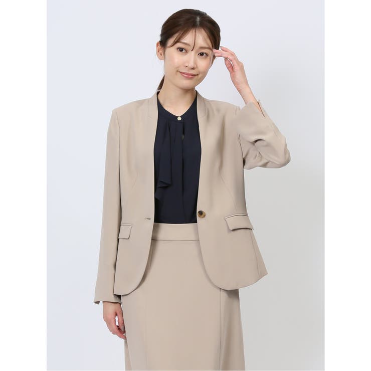 エムエフエディトリアルレディース/m.f.editorial:Womenダブルクロス カラーレスジャケット ベージュ(セットアップ可能)■素材特徴表地はポリエステル100%の二重織素材、綺麗目なダブルクロスを使用しています。 トロミのある落ち感とソフトな風合いが特徴です。 裏地は抗菌加工をほどこした、再生ポリエステルのストレッチ生地です。 ■機能【ストレッチ】表地・裏地共に伸縮して、ストレスフリーな着心地。 【ウォッシャブル】洗濯機で洗えるので、清潔に着ていただけます。 【イージーケア】洗濯後もシワが入りにくく、お手入れも簡単です。 ■デザイン抜け感のある、一つボタンのVカラージャケットです。 袖口は着脱がスムーズなスリット入りで、折り返しても着用可能です。 ■シルエットボディラインに自然に沿ったベーシックなシルエットです。 ウエストをやや絞ることで、すっきりとした印象に仕上げています。 ■コーディネート同素材のアイテムと合わせると、オケージョンに最適なコーディネートに仕上がります。 オフィスシーンはもちろん、プライベートやセミフォーマルに、オンオフ兼用で活躍してくれます。 ■セットアップアイテムは下記品番をご参照ください。 ・ダブルクロス サックワンピース ベージュ:120070953107433・ダブルクロス フレアースカート ベージュ:120060953107433・ダブルクロス テーパードパンツ ベージュ:120110953107433フィット感:標準シーズン:春夏展開カラー:ベージュ裏地:背裏クロスバック・胴裏有り・袖裏無し*こちらの商品はセット販売ではなく、単品のみの販売となります。 *アテンションタグ・洗濯ネームを御確認の上、着用又は取り扱い下さい。 *光の当たる場所や高温多湿になる場所での保管は避けて下さい。 *使用の有無に関わらず、経年劣化は進行いたしますのでご了承下さい。 *閲覧デバイス・環境により質感・色味に誤差が生じる場合がございます。 *サイズ詳細S 着丈 55 肩巾 37 バスト 89 胴回 74 袖丈 58 袖口巾 12M 着丈 56 肩巾 38 袖口巾 12.5 バスト 93 胴回 78 袖丈 59L 肩巾 39 袖丈 60 着丈 57 バスト 97 胴回 82 袖口巾 13XL 着丈 58 肩巾 40 バスト 101 胴回 86 袖丈 61 袖口巾 13.5※サイズ表に記載の寸法は実寸表記となり、商品に付属の下げ札等に記載の寸法とは異なる場合がございます。 *商品番号:120100953107433返品・交換について購入後の交換は受け付けておりません。 予めご了承ください。 返品を希望される場合は購入履歴一覧の「ショップへの問い合わせ」よりお問い合わせください。 =========================複数配送先指定について1件の注文に対して、異なる住所への配送は対応出来かねます。 恐れ入りますが、異なる住所へ配送をご希望の場合、配送先毎に分けて注文いただきますようお願い申し上げます。 【スーツ・フォーマルウェアWOMEN】33ベージュ S M L XL 表地:ポリエステル100% 裏地:ポリエステル100% 【10%OFFクーポン!2/10(火)1:59まで】TAKA-Q WOMEN ダブルクロス カラーレスジャケット ベージュ(セットアップ可能) スーツ 22,000 ~