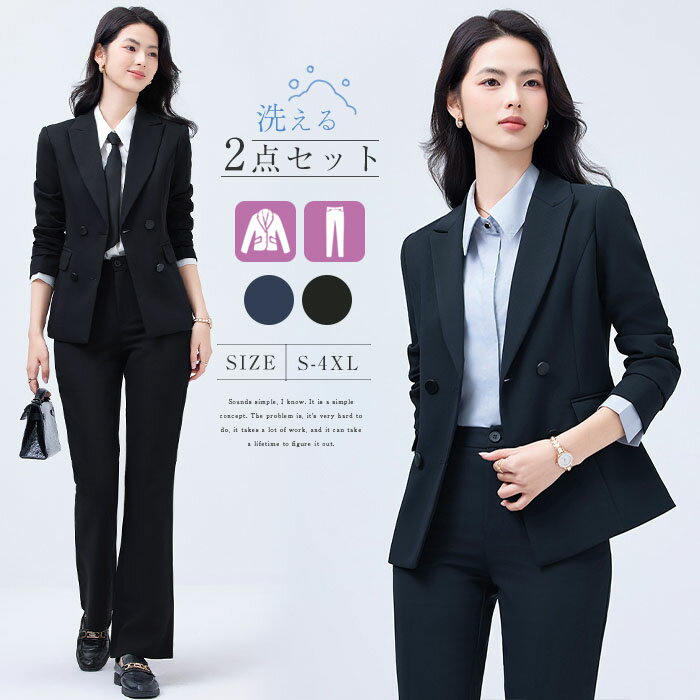 スーツ レディース パンツスーツ スーツセット ビジネススーツ セットアップ 大きいサイズ ジャケット テーパード フレア 洗える 2点セット 30代 40代 七五三 七五三スーツ ママ ママスーツ オフィス 仕事服 面接 営業 リクルート 通勤 黒 紺 8,980 ~
