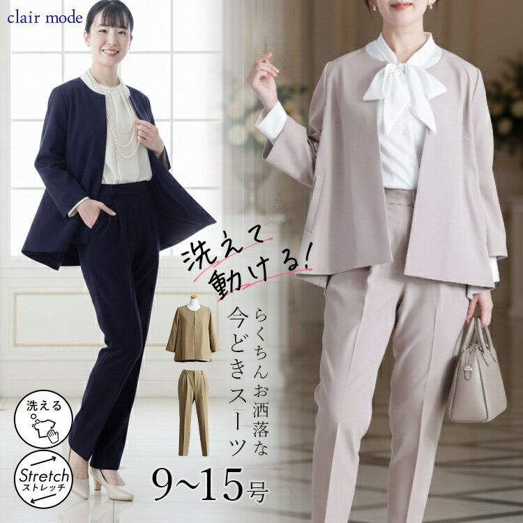 Greige Black Navy Detail 商品詳細 タックペプラムノーカラージャケット&ワンタックパンツスーツ(CSU1198) 【ジャケット】+【パンツ】の2点セット 甘さのあるデザインでありながらも、女性らしさが溢れるセットアップスーツ。 フェミニンさがあるジャケットと、大人の印象を与えてくれるワイドパンツの2点SET。 洗練されたデザインで好印象を演出します。 【オケージョン】おすすめシーン [通 勤] ワンランク上の大人の女性を演出。 オフィス街に馴染む、品格のあるデザイン。 食事会や目上の方との打ち合わせの時にも、知的で大人の余裕あふれる女性に魅せてくれます。 [学校行事] 優しい印象にきちんと感をプラス。 七五三や発表会などお子様の行事ごとには華やぎのあるデザインブラウスを合わせれば、フォーマル過ぎず清楚で落ち着いた印象に。 [デイリー] 単品使いでデイリーにも活躍するジャケットやパンツの単品使いで、普段にも使える万能アイテム。 スニーカーSTYLEなど、カジュアルコーデも◎ 【機能性】 ◆ストレッチ しなやかでストレッチ性がある素材なので動きやすさはもちろん、長時間の着用でもストレスを感じにくい素材になっています。 ◆花粉対策加工 花粉が付着しにくく、取れやすい加工。 通常の生地には、繊維表面に凹凸があるため花粉の粒子が引っかかりやすい構造をしています。 花粉対策加工は繊維表面を超微細な粒子でコーティングして凹凸を軽減させ、花粉やほこりが付着しにくく取れやすい加工です。 ※花粉対策の加工を施していますが、永久的なものではありません。 着用やお洗濯を繰り返すことにより、花粉吸着加工剤の効果はゆるやかに逓減していきます。 ◆ウォッシャブル 自宅で洗えるので清潔を保ち節約にも。 着回しができるワードローブの核になるアイテムは、活躍の場が多いもの。 汗や汚れ、臭いが気になった時に手軽に落とすことができるので、清潔を保ちクリーニング代の節約にも。 ◆消臭・抗菌 「消臭」&「抗菌効果」のあるデオドラントネーム付き。 不快な汗の匂いも防いでくれる安心仕様。 ・ドライクリーニングOK ・皮膚添付試験で皮膚への刺激性に弱い2B判定。 デオドラントネームとは、優れた消臭&抗菌効果を備えたフィルムラミネート消臭ネームです。 無機物でできた安全で優れた消臭剤が各種の悪臭を吸着し、臭いのしない成分に中和無臭化します。 デオドラントネームは「アンモニア」「酢酸」「イソ吉草酸」の悪臭成分に対し効果がありますが、中でも生活悪臭において最も代表的とされる「アンモニア」に対し効果があります。 ※デオドラントネーム Rは優れた「消臭機能」を持ちますが過度の「消臭能力」を期待されないようご注意下さい。 【ディテール】 [ジャケット] ・シルエット ダブル前仕立てのノーカラージャケットは、ウエストにタックをとって構築的なシルエットに。 後ろ姿もタック&ベルトですっきり見え間違いなし。 気になる腰回りもペプラムが上品にカバーしてくれます。 ・裏地 総裏仕立てのしっかりとした作りになっています。 さらりとした肌触りの裏地で、オールシーズン活躍できます。 ・スコッチボタン 高級感のある水牛調のボタンを使用しています。 ・内ボタン 美しいVラインをキープするため、同色の内ボタン付きでしっかりと留まります。 ・ポケット 両脇に便利なポケット付き。 [パンツ] ・シルエット パンツはワンタックの細身ワイドで脚長効果があります。 センタープレスが入っているのできちんと感も◎ ・裏地 さらりとしたニット生地の半裏仕立てで、ストレッチ性があり動きやすさも抜群です。 ・開き具 ホックとボタンの二重構造でしっかりと留まります。 ・ポケット 左右に便利なポケット付き。 ・ウエストゴム ウエストは後ろゴム仕様でウエスト周りはすっきりと見せつつ、ストレスフリーな履き心地です。 [生地] ストレッチ性のあるさらっとした肌触りで、女性らしいスーツに適した素材です。 ※ジャケットとパンツは同素材です。 ・ストレッチ しなやかでストレッチ性がある素材なので動きやすさはもちろん、柔らかい生地で長時間の着用でもストレスを感じにくい素材になっています。 【カラーバリエーション】 ・ブラック ・ネイビー ・グレージュ ●おすすめシーン 入学式(入園式)、卒業式(卒園式)、演奏会、発表会、学校行事、参観、セレモニー、2次会(二次会)、1.5次会、お呼ばれ、女子会、食事会、成人式、同窓会、謝恩会、誕生日会、七五三、お宮参り、パーティー、デート、婚活、街コン、オフィス、通勤、キャリア、ビジネススーツなど、20代・30代・40代・50代まで母親・ママさんにもご活用頂けるフォーマルなレディーススーツです。 サイズ ジャケット *着丈 バスト ウエスト 肩幅 袖丈 S7号 60 88 76 37 59 M9号 61 92 80 38 60 L11号 62 96 84 39 61 LL13号 63 100 88 40 62 3L15号 64 106 94 41 パンツ *総丈 ウエスト ヒップ 股下 渡り 裾幅 S7号 97 62?78 98 68 31 24 M9号 98 66?82 102 32 25 L11号 99 70?86 106 33