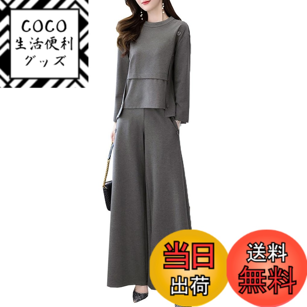 【送料無料】[DYIOPMFGZ] 上下セット ジャージ パンツスーツ セットアップ レディース 2点セット キュロットスカート パンツドレス パンツ ワイドパンツ Tシャツ ロングパンツ 春秋 ゆったり ロング丈 フォーマル 通勤 着痩せ 色:グレー、サイズ:M 5,409 ~