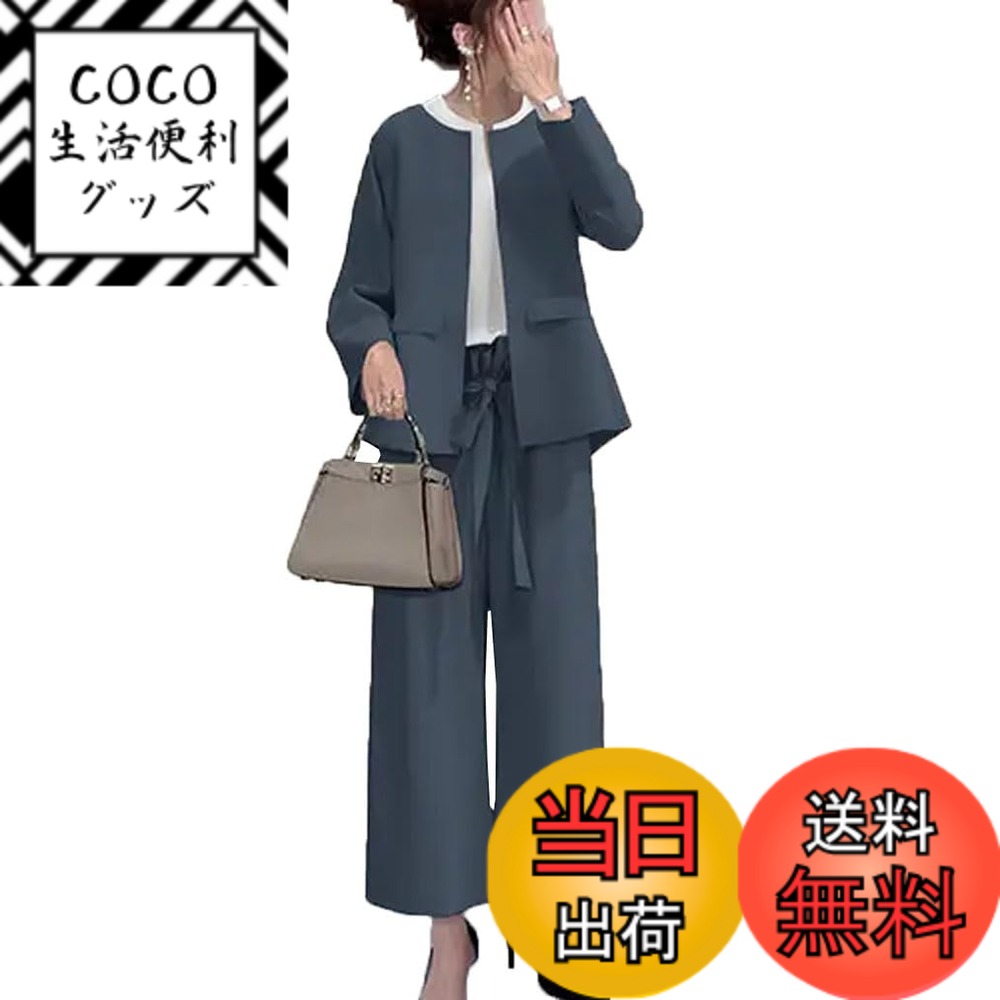 【送料無料】[DYIOPMFGZ] スーツ パンツスーツ ワイドパンツ レディース コート 2点セット ジャケット ロングパンツ アウター 上下セット オフィスウェア パンツドレス フォーマル 通勤OL 入園式 入学式 長袖 カジュアル 春夏秋冬 色:ネイビー、サイズ:M 5,888 ~