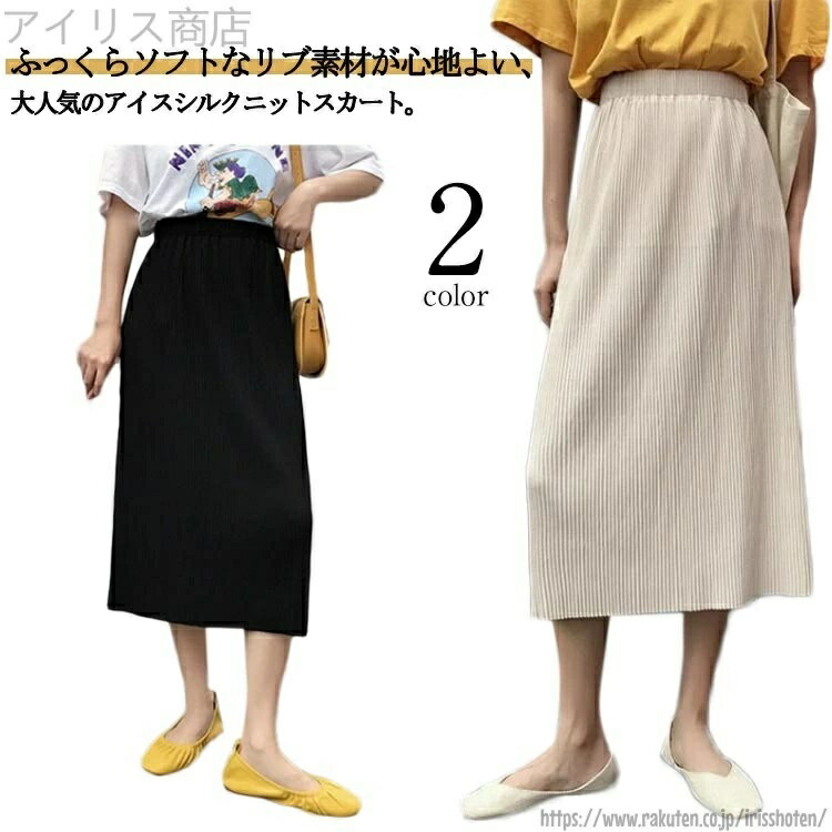 ウエストゴム スカート ボトムス タイトスカート 夏用 リブ ニットスカート 冷感 ロングスカート レディース アイスシルク 2,608 ~