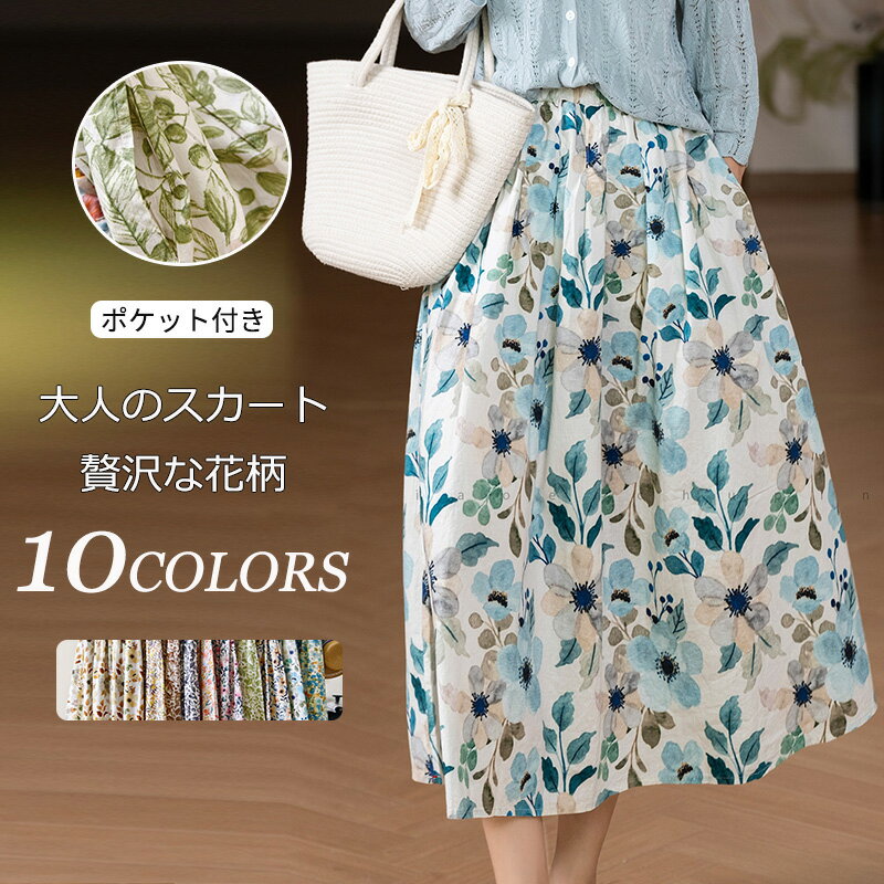 花柄スカート ロング 夏 ロングスカート ゴム スカート 春夏 ミモレ丈 マキシ丈 フレアスカート 低身長 マキシスカート 花柄 ボトムス レディース 体型カバー スカート ロンスカ ウエストゴム 大きいサイズ ゆったり 森ガール ポケット付き 通気性 吸湿 きれいめ 大人可愛い 3,580 ~