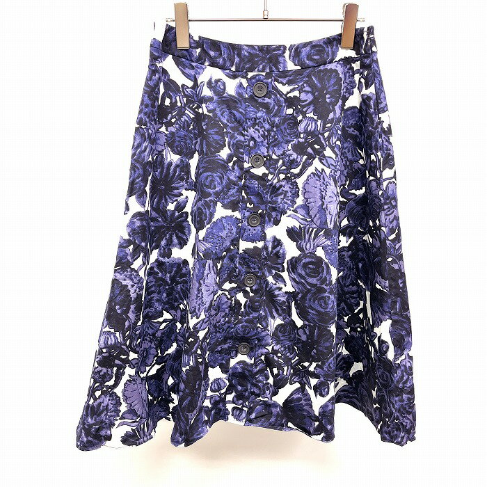 【もうすぐ終了|全品PT10倍|明後日3/26(木)01:59\3月お買い物マラソン/最大2,000円OFFクーポン配布中】【中古】LAURA ASHLEY ローラアシュレイ 11号 L レディース 若干薄手 フレアスカート 飾りボタン 裏地付き 花柄 綿100% ネイビー×ホワイト 紺 11,980 ~