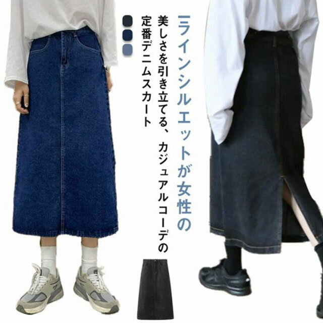 デニム タイトスカート ロングスカート レディース Aライン ボトムス バックスリット入り 体型カバー カジュアル 大きいサイズ 春 秋 無地 全3色 3,130 ~