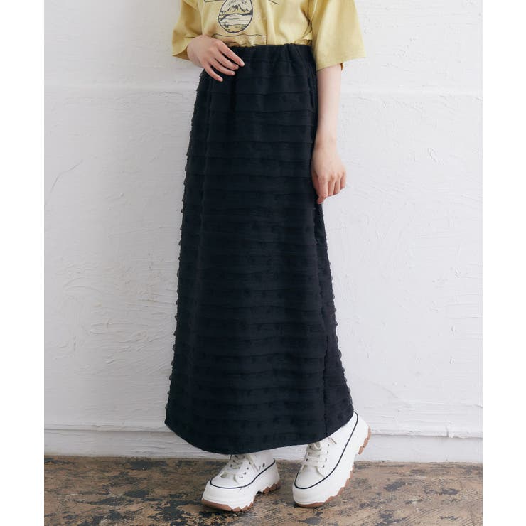 \動くたび、ふわっと揺れる。 主役級ティアードスカート/ フリルティアードミドル丈スカート 甘さと抜け感のバランスがちょうどいい ガーリーにもカジュアルにもマッチ スタイリングに立体感をプラスする一枚 ▽デザイン▽ 段ごとに施されたフリルが印象的な、ティアードデザインのミドル丈スカート。 ボリューム感のあるフレアシルエットで、動くたびに自然な揺れ感を演出します。 ウエストはすっきりとした仕様で、トップスインもきれいに決まるバランス。 甘さのあるデザインながら、広がりすぎないシルエットで大人っぽく着用できます。 ▽ スタイリング ▽ コンパクトなトップスと合わせて、スカートを主役にしたスタイリングがおすすめ。 スウェットやロゴトップスと合わせれば、甘さを抑えたカジュアルミックスにも◎ ブラウスやニットと合わせて、デイリーからお出かけまで幅広く活躍します。 ▽カラー▽ ブラック アイボリー ▽サイズ▽ FREE ●モデル身長 : 158cm ●着用サイズ : FREE ▽素材▽ ポリエステル100% ▽生地・素材感▽ …………………………………… ●生地: 普通 ●透け感: アイボリーのみややあり ●伸縮性: ない ●裏地: あり(ポリエステル100%) …………………………………… ▽原産国▽ 中国 ●サイズ:※単位(約cm) ※平置き採寸になります。 若干の誤差が生じる場合がございます。 ◎FREEサイズ◎ ●ウエスト(ゴム) : 28cm ●ヒップ : 75cm ●総丈 : 55cm ※輸送時による、多少の汚れ・シワがある場合がございます。 ※撮影時のライティング、ご覧になっているモニター・PC環境により実際の商品と色味が異なって見える場合がございます。 ご了承の上お買い求め下さい。 返品・交換について購入後の交換は受け付けておりません。 予めご了承ください。 返品を希望される場合は購入履歴一覧の「ショップへの問い合わせ」よりお問い合わせください。 =========================複数配送先指定について1件の注文に対して、異なる住所への配送は対応出来かねます。 恐れ入りますが、異なる住所へ配送をご希望の場合、配送先毎に分けて注文いただきますようお願い申し上げます。 【スカートWOMEN】ブラック アイボリー FREEブラック アイボリー 【10%OFFクーポン!2/10(火)1:59まで】VIVID LADY フリル ティアード フレアスカート スカート 3,696 ~