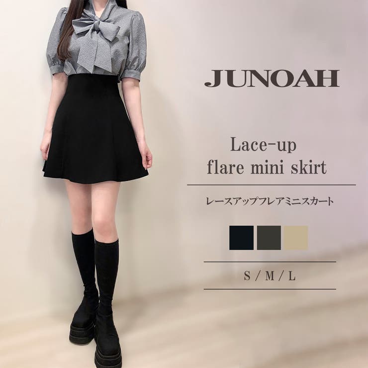 サイズ:S-L(約cm)S:総丈43 ウエスト66M:総丈45 ウエスト68L:総丈47 ウエスト70素材表地: ポリエステル94%, ポリウレタン6%, 裏地: ポリエステル100%■原産国中国着用モデル:身長166cm Lサイズ着用※サイズ感を画像でご確認の上、ご検討ください。 ※商品画像は撮影時の光や角度により、実物の色味と異なって見える場合がございます。 ※撮影はサンプル品を使用しており、表示のサイズ感も実物とは若干異なる場合もございますので、予めご了承ください。 ※生産時期により色・素材・サイズ感など多少異なる場合がございます。 予めご了承ください。 返品・交換について購入後の交換は受け付けておりません。 予めご了承ください。 返品を希望される場合は購入履歴一覧の「ショップへの問い合わせ」よりお問い合わせください。 =========================複数配送先指定について1件の注文に対して、異なる住所への配送は対応出来かねます。 恐れ入りますが、異なる住所へ配送をご希望の場合、配送先毎に分けて注文いただきますようお願い申し上げます。 【スカートWOMEN】ブラック アイボリー チャコール S M Lブラック アイボリー チャコール 【10%OFFクーポン!2/10(火)1:59まで】JUNOAH レースアップフレアミニスカート スカート 2,699 ~