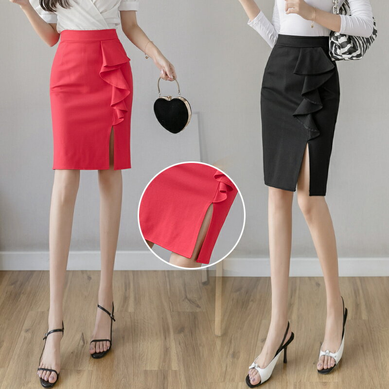 韓国ファッション スカート レディース ハイウエスト タイトスカート ひざ丈 ショート 無地 スリット入り スリム 通勤OL オフィス 美脚 着痩せ ボトムス 2,516 ~