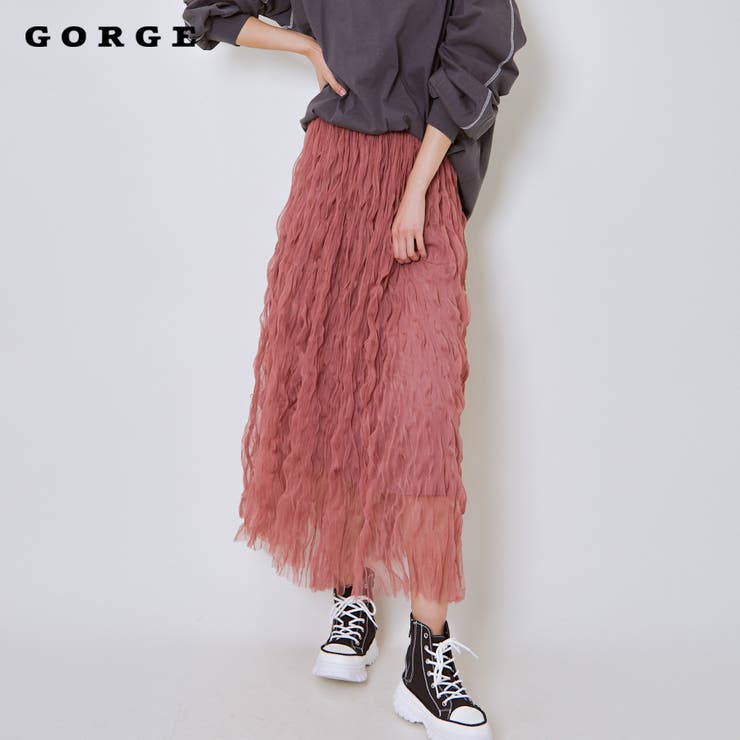 【10%OFFクーポン!2/10(火)1:59まで】GORGE 《ウェーブチュール×透け感レイヤード》レディース ロングスカート フレアシルエット 春夏秋冬 スカート 3,660 ~